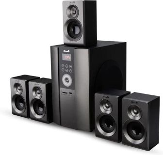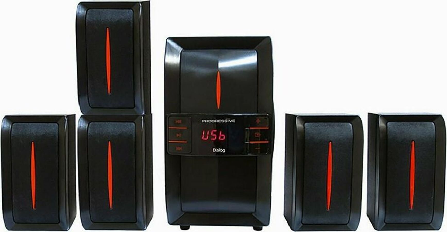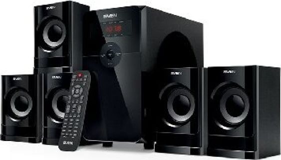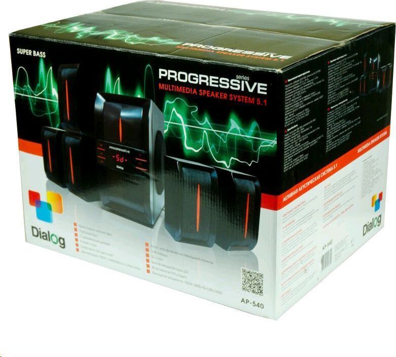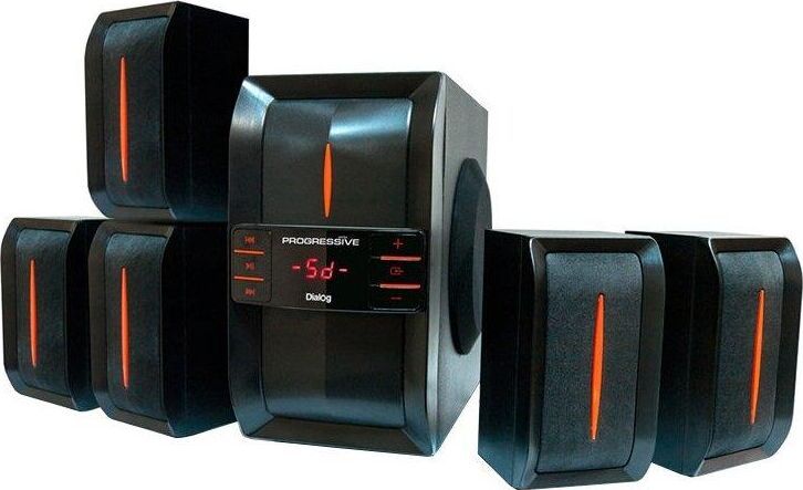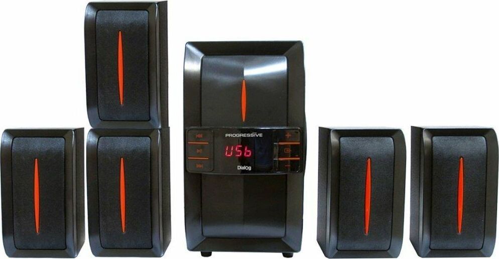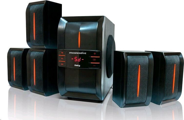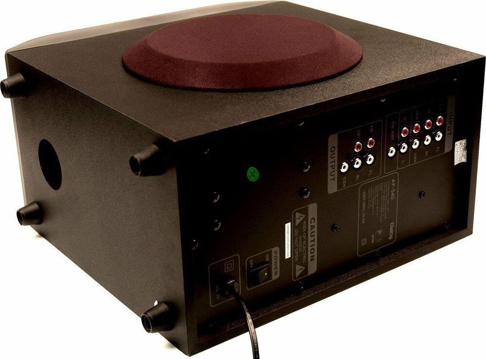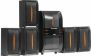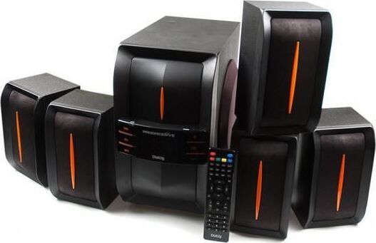 Активная акустическая система 5.1. Поддержка карт SD (Secure Digital), USB, FM. Мощность RMS (Вт): 100 (40+12*5). Усилитель: встроенный. Компоненты: сабвуфер, 2 фронтальных сателлита, 2 тыловых сателлита, центральный сателлит, пульт ДУ. Входы: вход 5.1 (6RCA), FM антенна, USB порт для флэш-накопителей; Слот для SD карт. Сабвуфер - 6,5". Частотный диапазон (Гц-Гц): от 40 Гц. Сопротивление (Ом): 4. Габаритные размеры (В*Ш*Г): 315*310*170 мм. Сателлиты - 5*3". Частотный диапазон (Гц-КГц): до 20 кГц. Сопротивление (Ом): 4. Габаритные размеры (В*Ш*Г): 110*110*200 мм. Корпус: 9 мм MDF сабвуфер / 5 мм MDF сателлиты. Длина сетевого кабеля: 1,5 м.