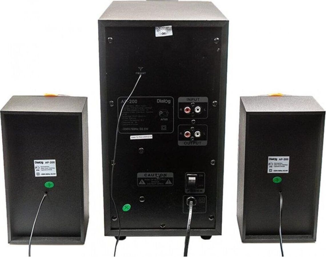 Активная акустическая система 2.1. Поддержка карт SD (Secure Digital), USB, FM, Bluetooth. Мощность RMS (Вт): 60 (30+15+15). Усилитель: встроенный. Компоненты: сабвуфер, два сателлита, пульт ДУ. Входы: стереовход (2RCA). Сабвуфер - 5.25". Частотный диапазон (Гц-Гц): от 40 Гц. Сопротивление (Ом): 4. Габаритные размеры (В*Ш*Г): 160*220*220 мм. Сателлиты - 3". Частотный диапазон (Гц-КГц): до 20 кГц. Сопротивление (Ом): 4. Габаритные размеры (В*Ш*Г): 200*118*118 мм. Корпус: MDF, 5 мм. Длина сетевого кабеля: 1,5 м.