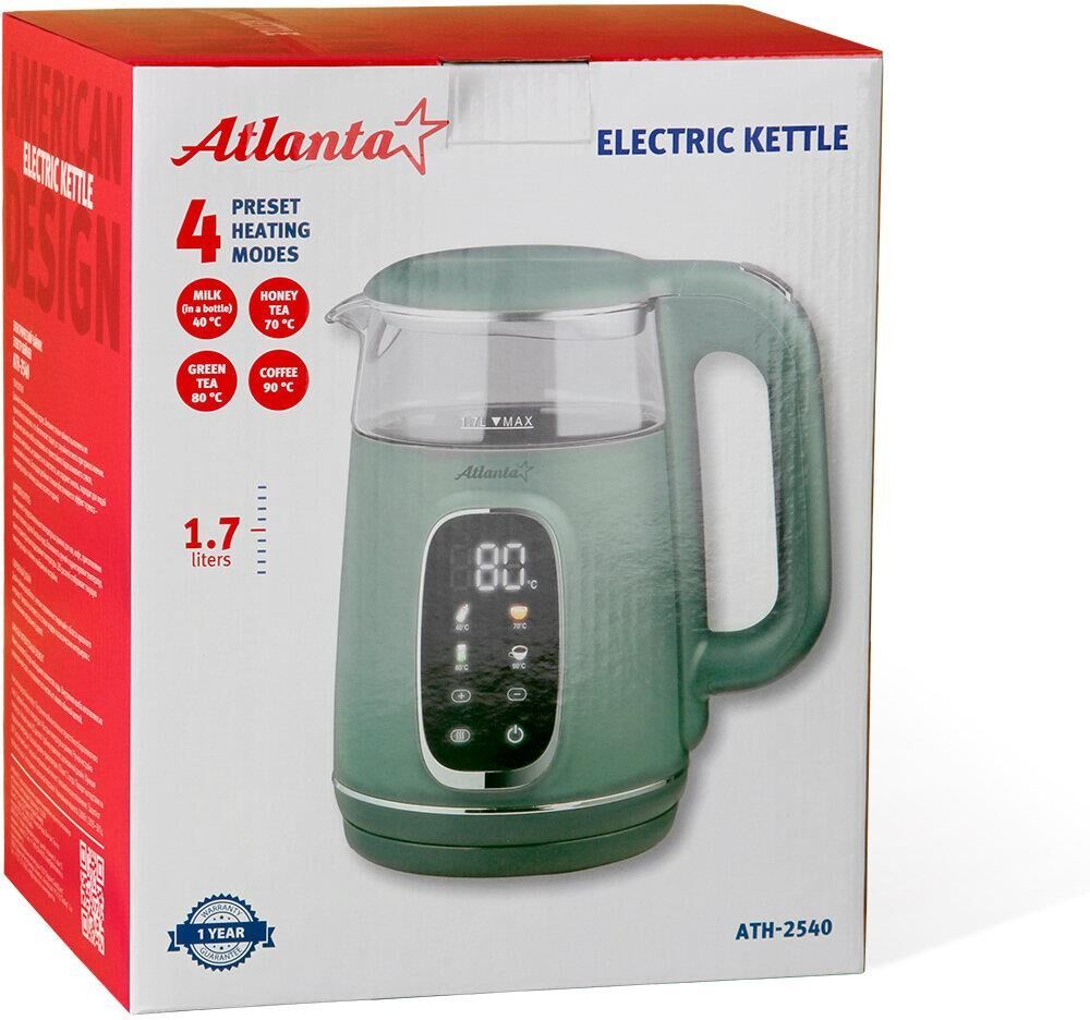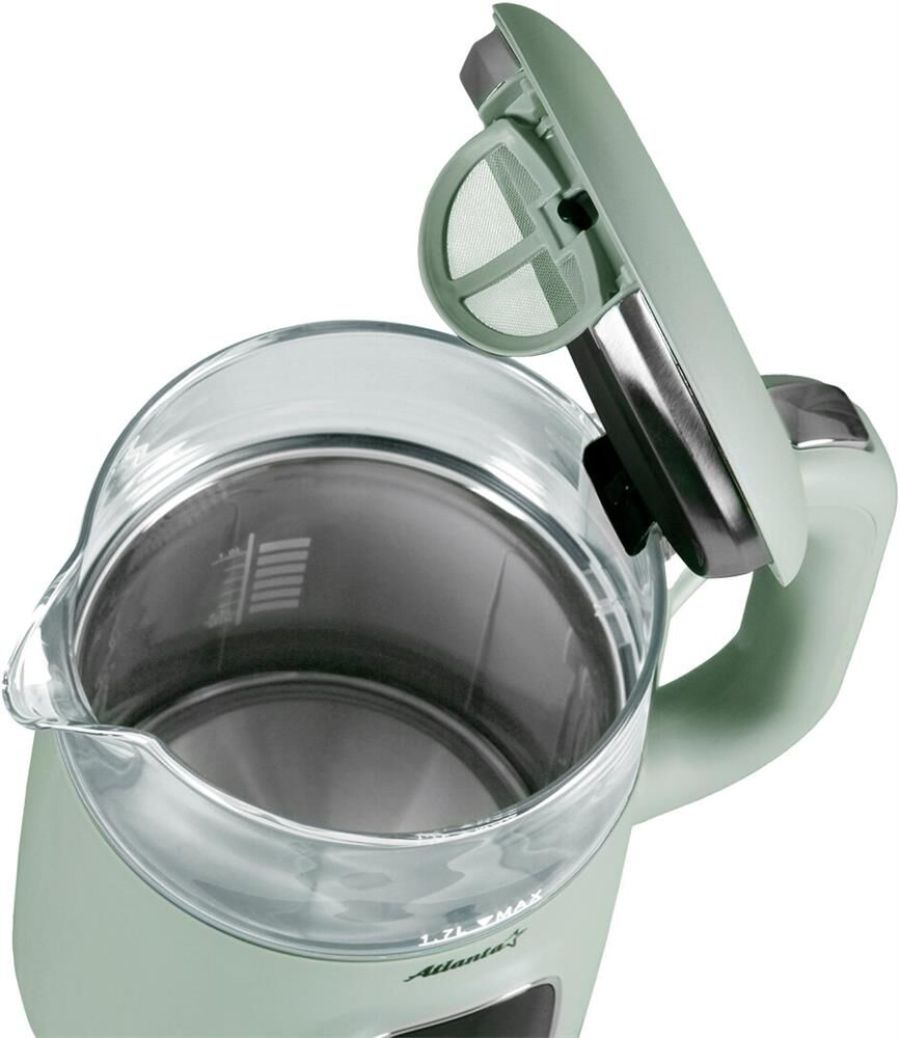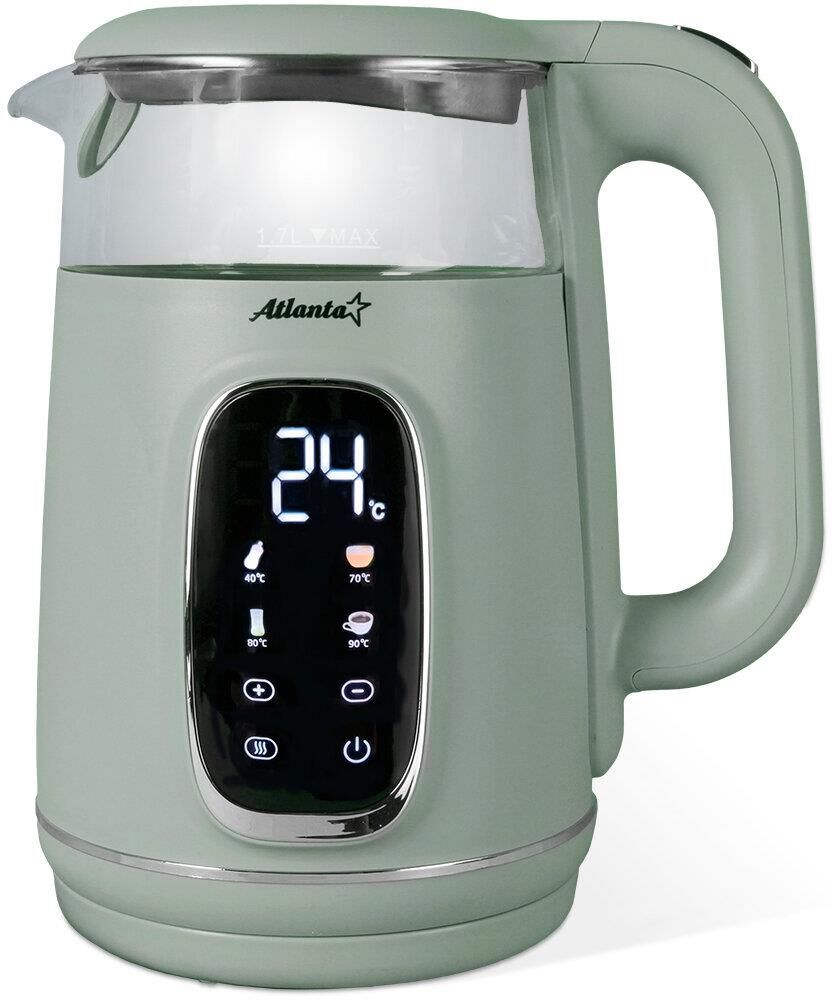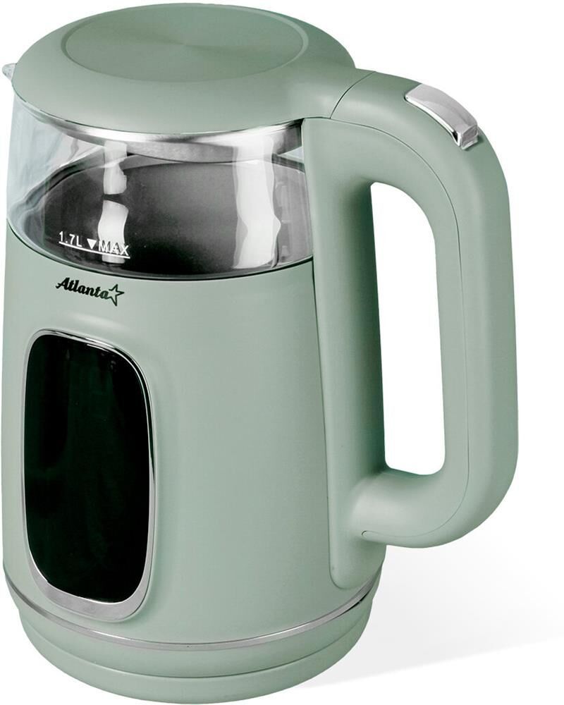 Чайник Atlanta ATH-2540 - это двухстенный электрочайник, выполненный в стильном зеленом цвете. Объем чайника составляет 1,7 литра, что позволяет приготовить достаточное количество напитка для большой компании. Особенностью этого чайника является композитный двухслойный корпус. Внутренняя колба выполнена из термостойкого боросиликатного стекла, что обеспечивает долговечность и безопасность использования.