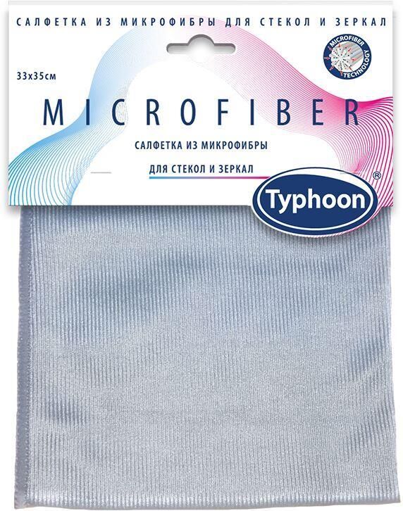 ТАЙФУН Салфетка из микрофибры для стекол и зеркал, 33х35 cм. Эффективно удаляет загрязнения, в том числе пятна и отпечатки пальцев. Придает блеск зеркальным поверхностям, оконным стеклам, стеклянным столам и кафельной плитке. Не требует применения моющих и чистящих средств. Обладает повышенной прочностью. Подходит для сухой и влажной уборки. Не повреждает поверхности. Не оставляет разводов и ворсинок. Долговечна в использовании.