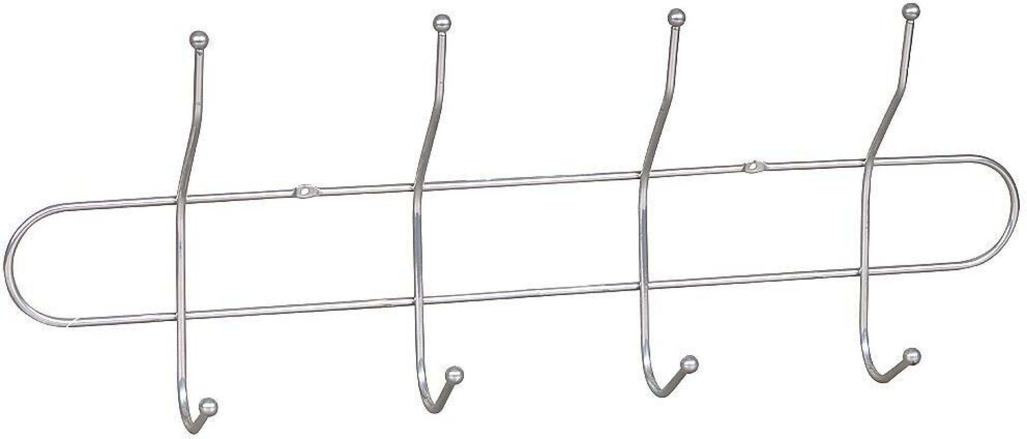 RUS-360016. Вешалка для одежды 4-х рожковая, размеры 57.5 х 7.5 х 21 см, материал: сталь с полимерным покрытием "блестящий хром" Произведено в России