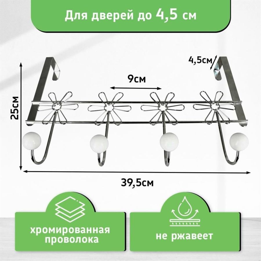 R-355061 Вешалка на дверь, 4 крючка. Материал хромированная проволока.Размер 11.5х39х24см