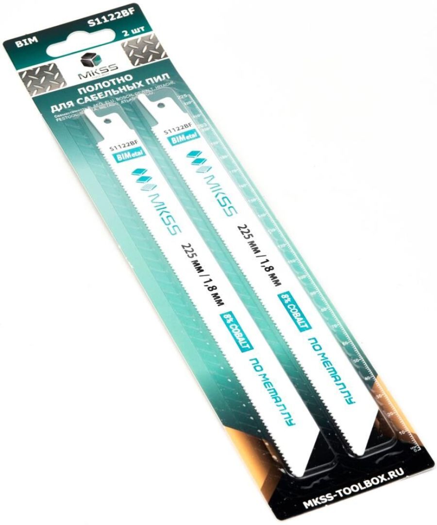Длинные пильные полотна S1122BF предназначены для сабельных ножовок. Комплект составлен из 2 насадок. Они применяются для распиливания толстого листового материала, сплошных труб. Изготовлены из стойкой высокоуглеродистой и быстрорежущей стали. Зубья разведенные, фрезерованные. Данной оснасткой можно делать быстрые пропилы и универсальные подгоночные пропилы.