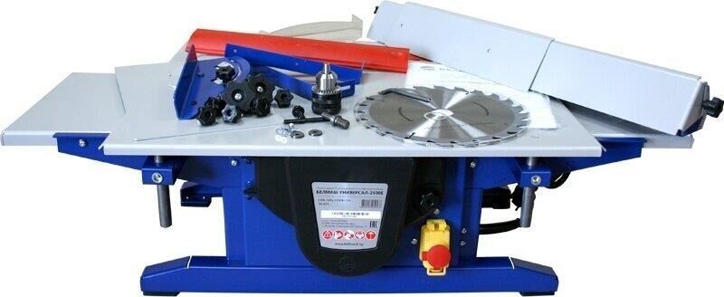 Станок деревообрабатывающий. Мощность 2500 Вт Напряжение питающей сети 230 В Частота тока 50 Гц Тип электродвигателя Асинхронный Диаметр пильного диска 250 мм Частота вращения пильного диска 5200 об/мин Диапазон углов распиловки вдоль волокон с помощью параллельного упора 0-45 ° Посадочный диаметр пильного диска 30 мм Диапазон углов распиловки по торцу -45...+45 ° Максимальная толщина распиливаемого материала 88 мм Размер пильного стола (Д х Ш) 646 х 556 мм Частота вращения ножевого вала 5200 об/мин Максимальная ширина строгания 270 мм Размер строгальных столов (Д х Ш) 955 х 286 мм Диапазон углов строгания с помощью параллельного упора 0-45 ° Количество ножей на валу 2 шт. Угол заточки ножей 40 ° Частота вращения дисковой фрезы 5200 об/мин Диаметр дисковой фрезы 125 мм Максимальная толщина дисковой фрезы 10 мм Посадочный диаметр дисковой фрезы 30 мм Частота вращения шпинделя 5200 об/мин. Диаметр хвостовика зажимаемого инструмента 13 мм Максимальная глубина строгания 3 мм