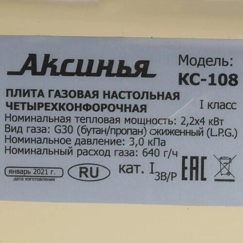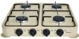 Номинальная тепловая мощность конфорок 2,2?4 кВт Номинальный расход газа 640 г/ч Номинальное давление газа 3000 Па Вид сжиженного газа G30 (бутан/пропан) Количество конфорок 4 конфорки Тип настольная Тип розжига горелки ручной Максимальная нагрузка на одну конфорку 10 кг Минимальный/максимальный диаметр дна посуды 120/160 мм