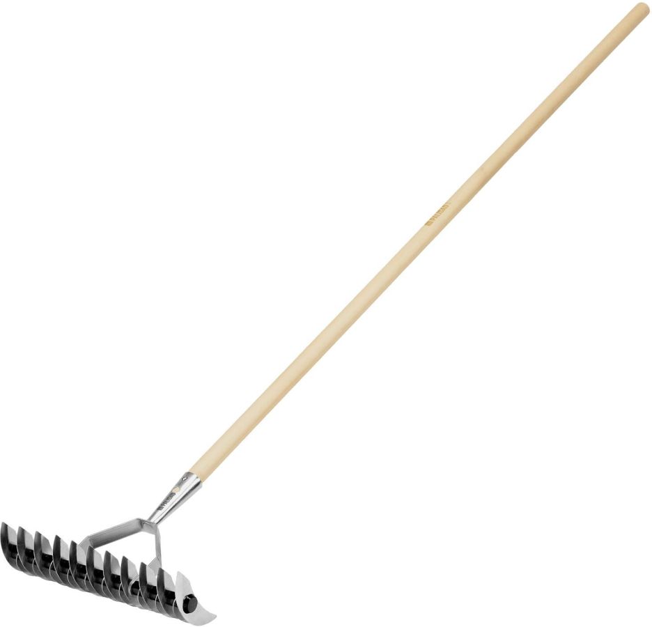 Стальные аэраторные грабли Palisad BASE 61816 с двусторонней рабочей частью шириной 325 мм, с редкими и частыми зубьями (11 и 21 зуб соответственно), предназначены для ухода за газоном. Сторона с редкими зубьями оптимальна для удаления мха и спутанной травы, а также позволяет разбивать комки земли для эффективной аэрации почвы. Сторона с частыми зубьями подходит для вычесывания газона, уборки листьев, скошенной травы и мусора. Инструмент будет полезен для выполнения работ на загородном участке. Поставляются с черенком. Преимущества Прочность — прямые зубья из среднеуглеродистой стали выдерживают интенсивные нагрузки. Защита от разрушения — цинковое покрытие предотвращает образование коррозии. Комфортная работа — деревянный черенок удобно держать в руках, длина инструмента 1660 мм позволяет снизить нагрузку на позвоночник.