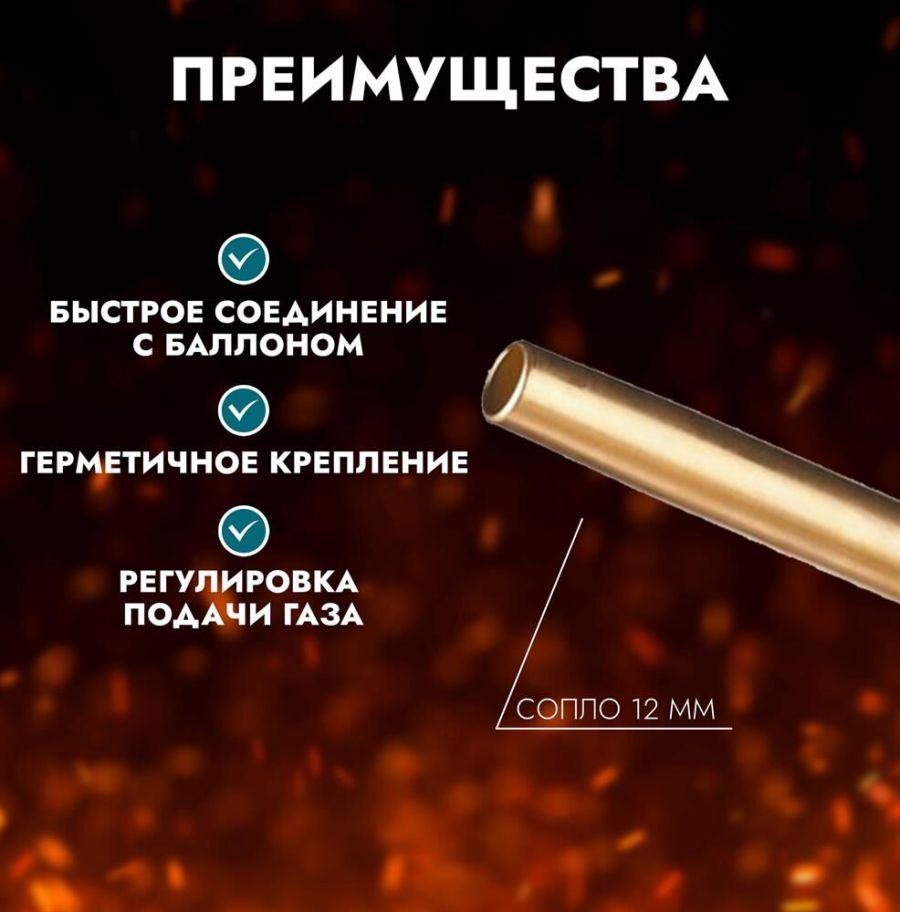 Газовая горелка обеспечивает выполнение широкого спектра работ: сварка, пайка, нагрев. Применяется в автомобильных мастерских, сервисах, походах, бытовой сфере. Благодаря цанговому зажиму горелка максимально плотно фиксируется на баллоне. Предусмотрена защита пламени от задувания ветром. Применение продукта: Сварка, бытовые предназначения Тип соединения: Цанговое Тип включения: Ручной Температура пламени: 1300°C Топливо: Газ Расход газа: 120 г/час (максимальный) Тепловая мощность: 1,65 кВт (максимальная) Материал: Металл, пластик Диаметр сопла: 12 мм Инструкция по эксплуатации: Плотно присоедините горелку к газовому баллону. Отрегулируйте подачу газа с помощью крана. Затем поднесите источник возгорания к соплу. После окончания работы поверните кран по часовой стрелке до упора и отсоедините баллон. Не направлять горелку с пламенем на конечности и лицо, а также в сторону легко воспламеняющихся предметов. Храните в недоступном для детей месте.