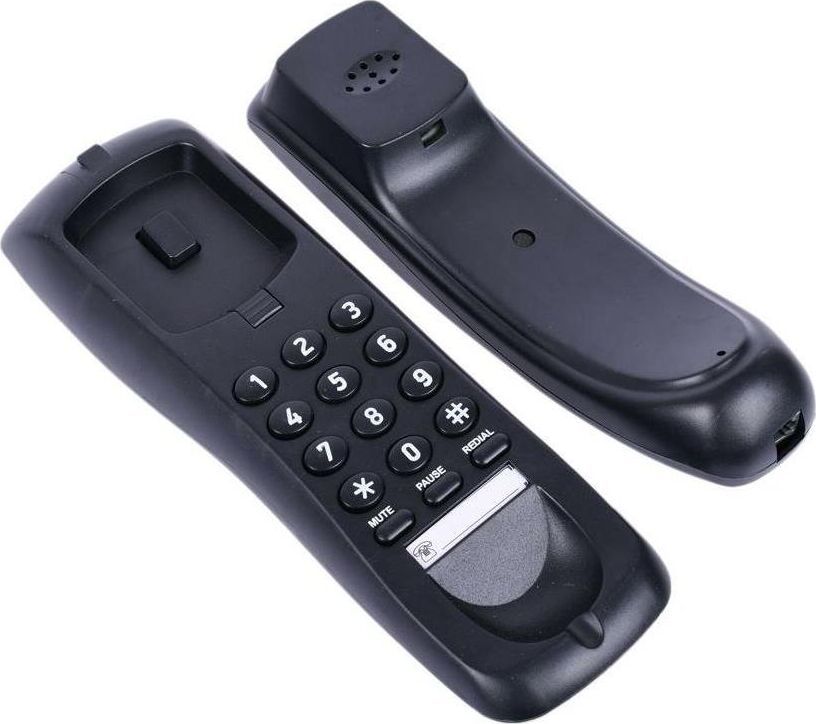 Телефон, Кол-во линий: 1, Спикерфон: нет, Спикерфон: нет, Время/дата на дисплее: нет, Время/дата на дисплее: нет, Разъем для гарнитуры: нет, Возможность установки на стене: да, Цвет: черный, страна производитель: Китай.