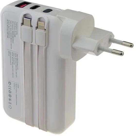 Perfeo Powerbank PLUG 10000 mAh/LED дисплей/Вход 230V/PD+QC 3.0/Выход: 5A, max 22.5W/ White