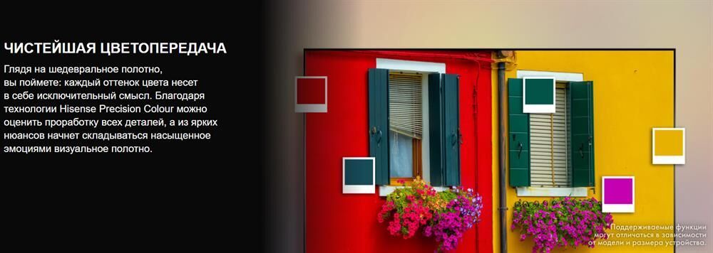 Экран: Диагональ: 43" (108 см) Разрешение: 4K UHD (3840×2160) Тип матрицы: VA Яркость: 200 нит Цветовой охват: 75% DCI-P3 Частота обновления: 60 Гц VRR: 48–60 Гц Игровая задержка: 16 мс Аудио: Динамики: 2.0 (2×7 Вт) Smart TV: Платформа: VIDAA U8.5 Разъёмы: HDMI: 3×HDMI 2.1 (1×eARC) USB: 2×USB 2.0 Энергопотребление: Мощность (SDR): 42 Вт Класс энергоэффективности: E Габариты и вес: С подставкой: 963×222×608 мм, 6.9 кг Без подставки: 963×74×560 мм, 6.8 кг Крепление VESA: 200×300 мм