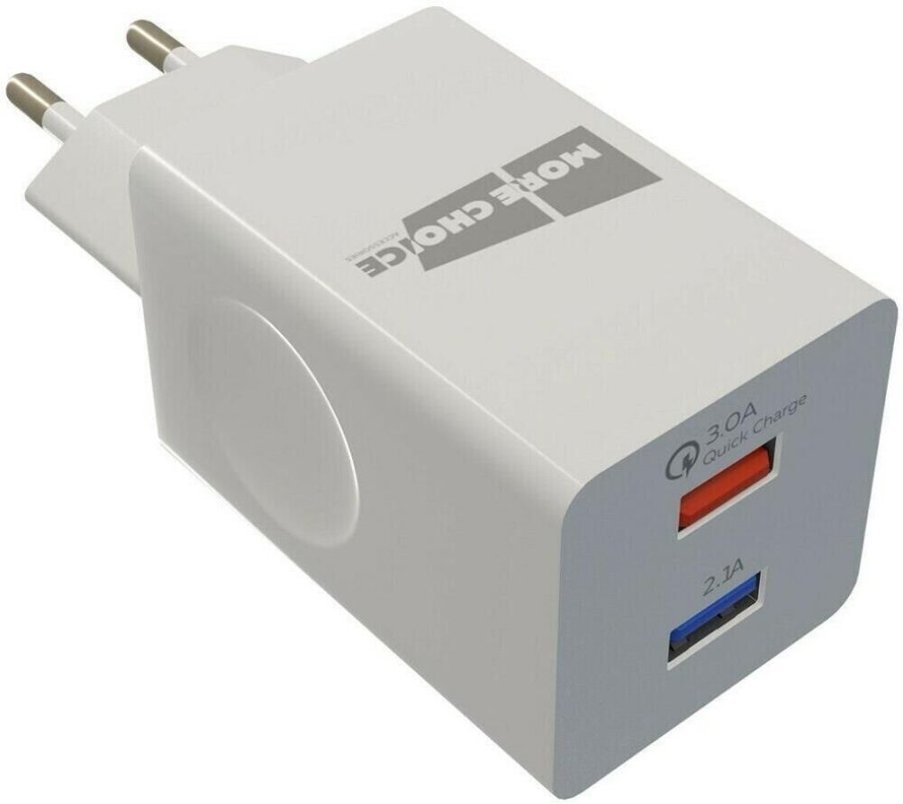 Cетевое зарядное устройство 2USB 3.0A QC3.0 быстрая зарядка для Lighting 8 -pin More choice NC69i ее максимальная сила тока 3А, имеет функцию защиты от перегрева и короткого замыкания, быстрая зарядка QC3.0. Данный товар за доступную цену.