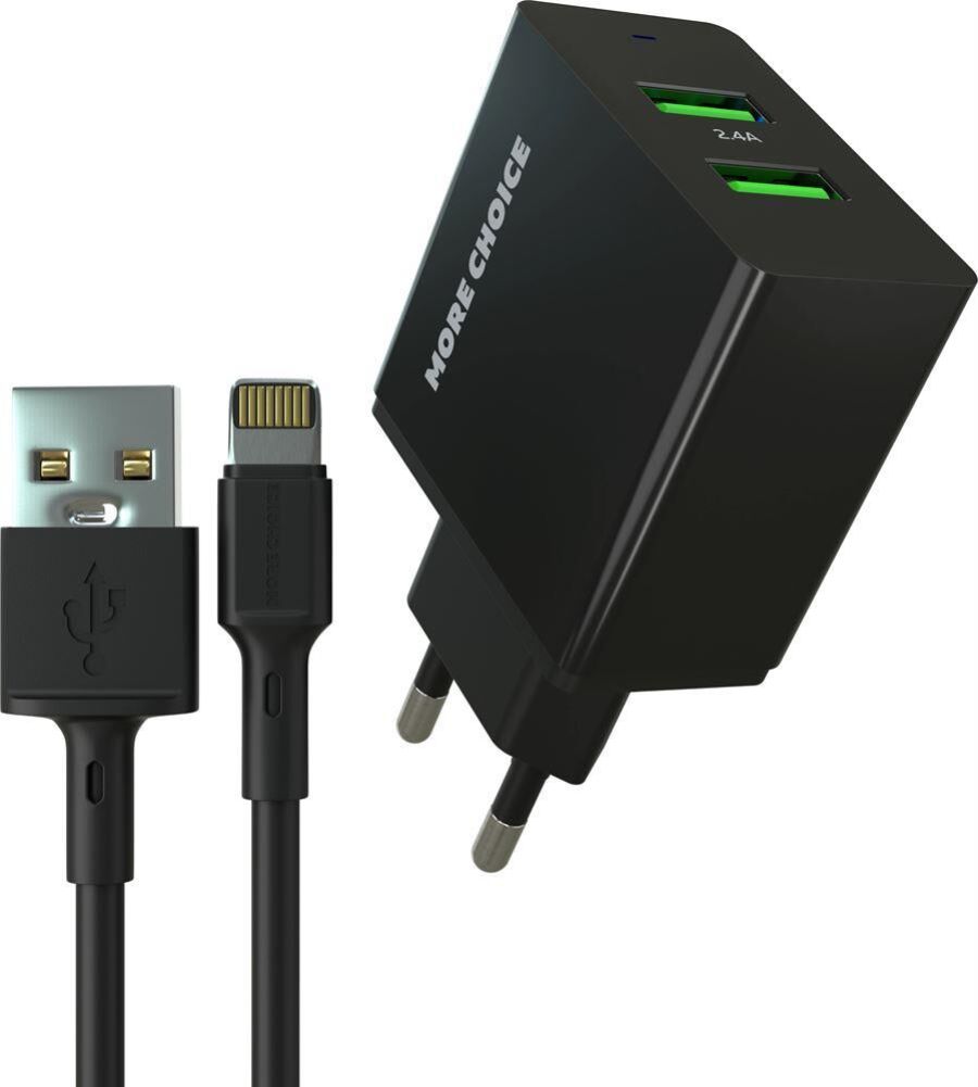 Сетевое зарядное устройство More choice NC11 оснащено двумя USB-портами, что позволяет вам одновременно заряжать два устройства от одной розетки. Зарядное устройство выполнено из материалов только высокого качества, что гарантирует быструю и безопасную зарядку аккумуляторов ваших устройств. Обеспечивает выходную мощность в 2.4 А. Встроенная многоуровневая система защиты от перегрузок и короткого замыкания делает использование зарядки абсолютно безопасным, а также исключает вероятность перезаряда гаджетов. Адаптер имеет компактные размеры, поэтому аксессуар легко поместится в сумке, рюкзаке или кармане, и вы с комфортом сможете взять его с собой на работу или в путешествие. В комплект входит зарядный кабель USB - Lightning 8-pin длиной 1 м.