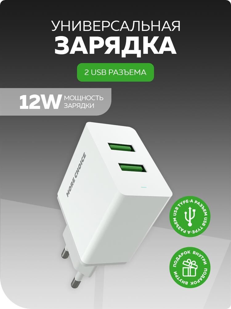 Сетевое зарядное устройство More choice NC11 оснащено двумя USB-портами, что позволяет вам одновременно заряжать два устройства от одной розетки. Зарядное устройство выполнено из материалов только высокого качества, что гарантирует быструю и безопасную зарядку аккумуляторов ваших устройств. Обеспечивает выходную мощность в 2.4 А. Встроенная многоуровневая система защиты от перегрузок и короткого замыкания делает использование зарядки абсолютно безопасным, а также исключает вероятность перезаряда гаджетов. Адаптер имеет компактные размеры, поэтому аксессуар легко поместится в сумке, рюкзаке или кармане, и вы с комфортом сможете взять его с собой на работу или в путешествие. В комплект входит зарядный кабель USB - Lightning 8-pin длиной 1 м.