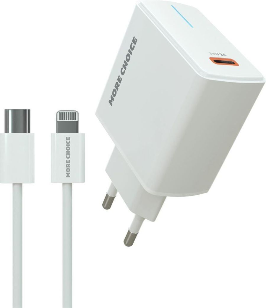 Сетевое зарядное устройство More choice NC60 позволяет в короткие сроки восполнить уровень заряда вашего гаджета благодаря эффективной выходной мощности 20W и поддержке ускоренного заряда по протоколу Power Delivery. Адаптер оснащен одним портом Type-C и имеет компактные размеры, поэтому аксессуар легко поместится в сумке, рюкзаке или кармане, и вы с комфортом сможете взять его с собой на работу или в путешествие. Корпус устройства выполнен из качественного ABC-пластика, который характеризуется долговечностью и высокой стойкостью к механическим повреждениям. Встроенная многоуровневая система защиты от перегрузок и короткого замыкания делает использование зарядки абсолютно безопасным, а также исключает вероятность перезаряда гаджетов. В комплект входит зарядный Lightning 8-pin - Type-C длиной 1 м.