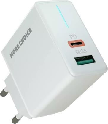 More choice NC61 это универсальное сетевое зарядное устройство с двумя портами USB и Type-C, который станет незаменимым помощником для зарядки ваших гаджетов. Адаптер поддерживает ускоренную зарядку по протоколу Q.C 3.0 и PD 20W, обеспечивая быструю и безопасную зарядку одновременно двух устройств. Зарядное устройство легко можно взять с собой на работу или в путешествие: компактный и практичный он быстро восполнит уровень заряда ваших мобильных устройств. Приспособление позволяет заряжать два устройства одновременно, это особенно полезно для тех, кто имеет несколько гаджетов и хочет экономить не только время, но и пространство. Обладает встроенной системой защиты от перегрузок и короткого замыкания. Вес адаптера 33 г.