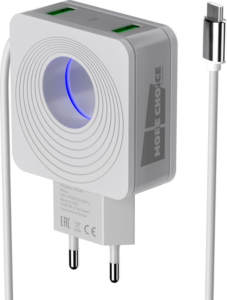 MORE CHOICE NC52QCm СЗУ 1USB 3.0A QC3.0 для micro USB быстрая зарядка White