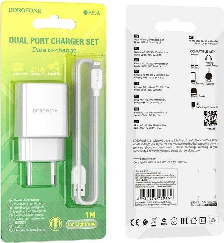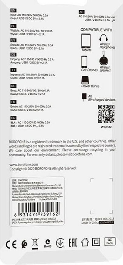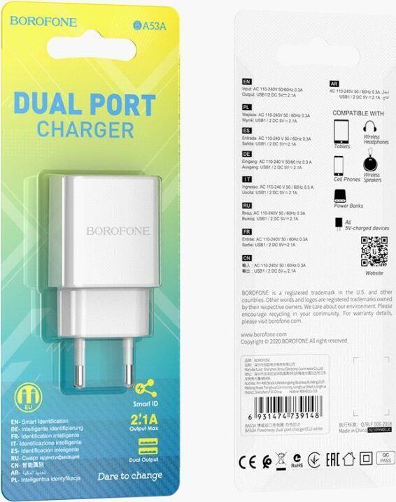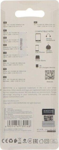 1. Материал: огнестойкий материал ABS + PC. 2. Размер: 80*38*23 мм, вес: 30г. 3. Выход: общий выход: 5V/2.1A, максимум для одного порта 5V/2.1A. 4. EU штекер.