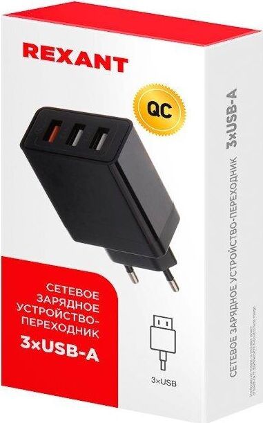 Сетевое зарядное устройство REXANT пополнит заряд батареи любимого смартфона или планшета в считанные минуты. Изделие осуществит быструю и безопасную зарядку вашего гаджета, защищая его от перепадов в сети переменного тока. Легкий и компактный адаптер удобно брать с собой в длительные поездки, путешествия, на дачу и в командировки. Подбирайте адаптер исходя из необходимой мощности для зарядки устройства. Тип: USB-A Входное напряжение: AC 110-240V Выход 3 гнезда: 3хUSB-A Размер: 86х40х24 мм Цвет корпуса: черный