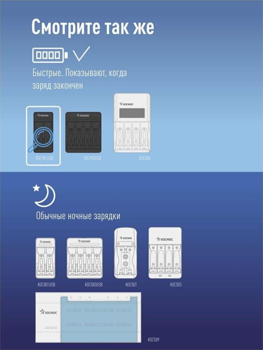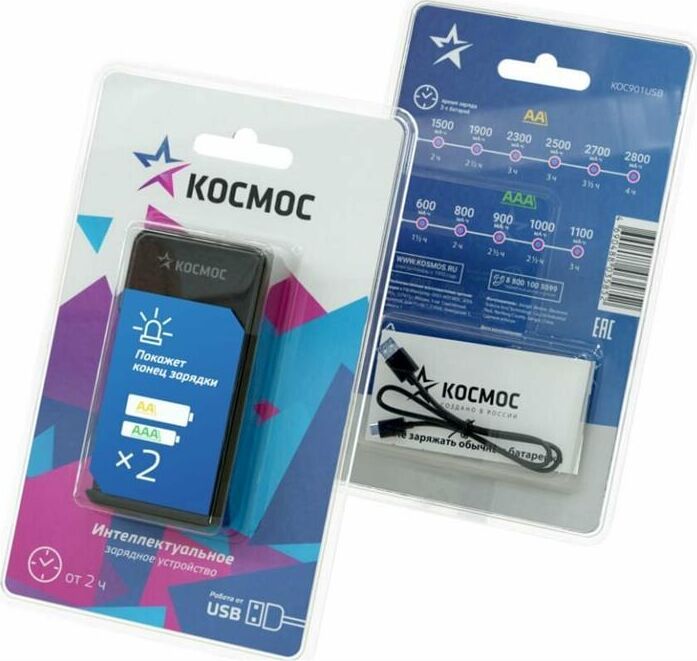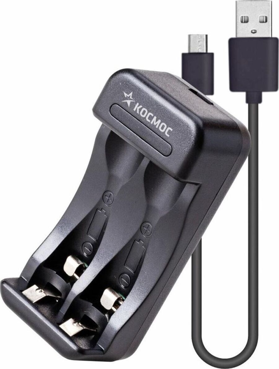 Зарядное устройство KOC901USB питание от USB шнур. "Умное зарядное устройство" с Автоотключением. Заряжают быстро - за пару часов - и сигнализируют, когда зарядка завершена. . Знакомый и понятный формат для Ni-MH и Ni-Cd аккумуляторов Заряжает 1-2 шт. AA/AAA. Слим-Дизайн: удобно класть в сумку для ноутбука. Не занимает розетку, легко подключить к ноутбуку или к адаптеру зарядки телефона.