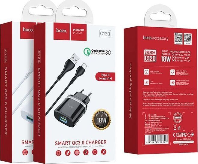 "Производитель Hoco; Кабель в комплекте есть; Разъем подключения USB 2.0; Количество разъемов 1; Напряжение 18 В; Максимальный выходной ток 3 А; Тип зарядного устройства Адаптер; Совместимость Планшеты, смартфоны, мобильные телефоны; Стандарт быстрой зарядки QC 3.0; Страна бренда Китай; Страна производитель Китай; Комплектация Зарядное устройство, кабель micro USB, упаковка "