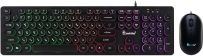 Проводной комплект, мультимедийного функционал плоские круглые клавиши + бесшумная мышь. Клавиатура имеет Rainbow-подсветку с опцией настройки яркости и функцией отключения, а также обладает повышенным ресурсом до 8 млн нажатий. Мышь полноразмерная с улучшенной эргономикой и приятной разноцветной подсветкой, есть опция отключения подсветки. Подходит для любой руки, с прорезиненным колесиком, приятным на ощупь Soft-Touch покрытием и управлением скоростью курсора от 800 до 2400 DPI., Питание USB