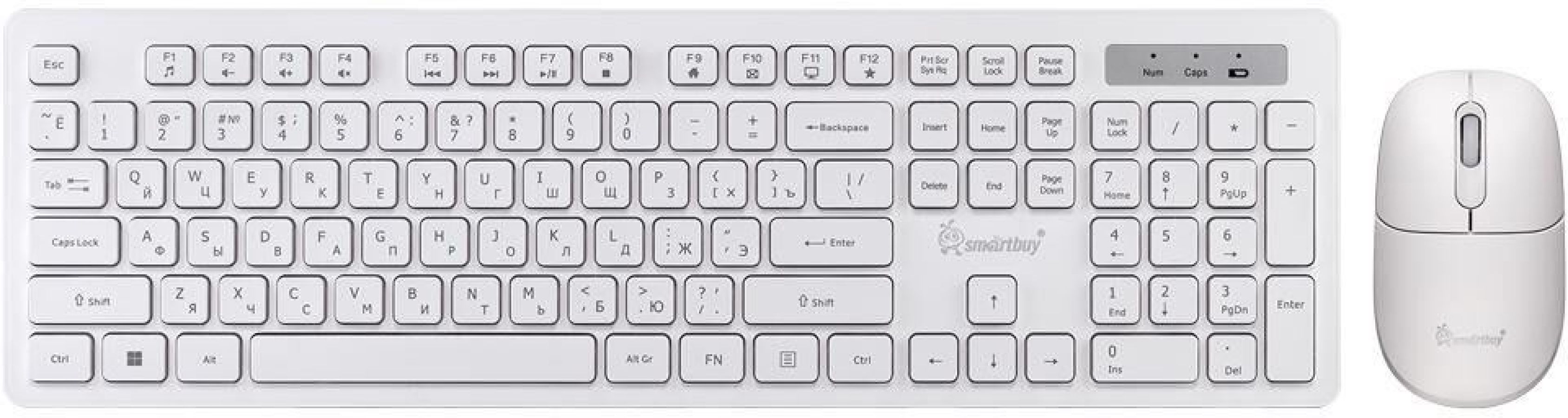Беспроводная клавиатура и мышь имеют выверенные эргономичные формы. У клавиатуры низкопрофильные клавиши, нажимаются тихо и мягко. У мыши бесшумные кнопки и оптимальный размер, на нижней панели есть кнопка включения/отключения питания. Мышь и клавиатура работают от одного нано-ресивера. Радиус сигнала до 10 метров. Клавиатура имеет мультимедийные клавиши, которые активируются при нажатой клавише FN. Батарейки входят в комплект. Питание: 1 х ААА, 1 x АА