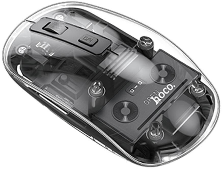 Беспроводная мышь HOCO удобна в использовании и подходит для работы с ноутбуом и ПК. Размер мыши 110*60*31 мм., вес: 58 г. Имеет 4 кнопки. Срок службы клавиш 3 миллиона нажатий.