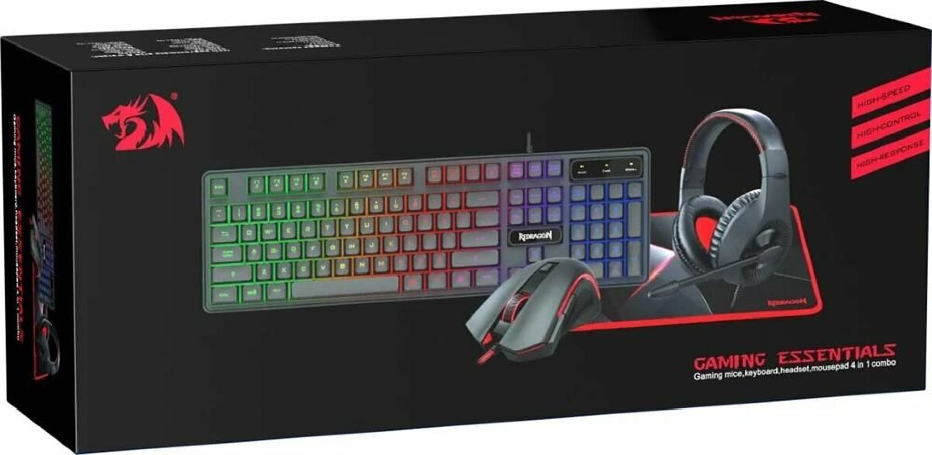 Полный комплект для геймеров включает в себя: мышь, клавиатуру, гарнитуру и ковер. Наушники - полноразмерные акустическое оформление закрытого типа Диаметр мембраны 40 мм, импеданс (микрофон) 2.2 кОм Чувствительность (наушники) 114 дБ, чувствительность (микрофон) -38 дБ, частотный диапазон (наушники) 20—20000 Гц , частотный диапазон (микрофон) 10—10000 Гц, разъемы 2 x 3,5-мм джек. Клавиатура- Интерфейс подключения USB Количество клавиш 104 шт. Резиновые ножки есть Длина кабеля 1.5 ±5% м Длина кабеля 1.5 ±5% м. Мышь - Тип сенсора оптический Тип подключения проводной Интерфейс подключения USB Количество кнопок 6 шт. Максимальное ускорение 15 g Длина кабеля 1.5 ±5% м. Коврик - Размер 330 x 260 x 3 мм Поверхность Speed Длина кабеля 1.5 ±5% м