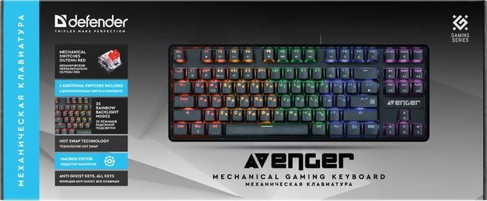 Компактная проводная механическая клавиатура на тихих красных свитчах Outemu. Ключевые достоинства модели: 25 режимов радужной подсветки, технология anti-ghost (все клавиши), возможность замены свитчей благодаря технологии Hot Swap. В комплект входят три дополнительных свитча, а также и пуллеры для кейкапов и свитчей.