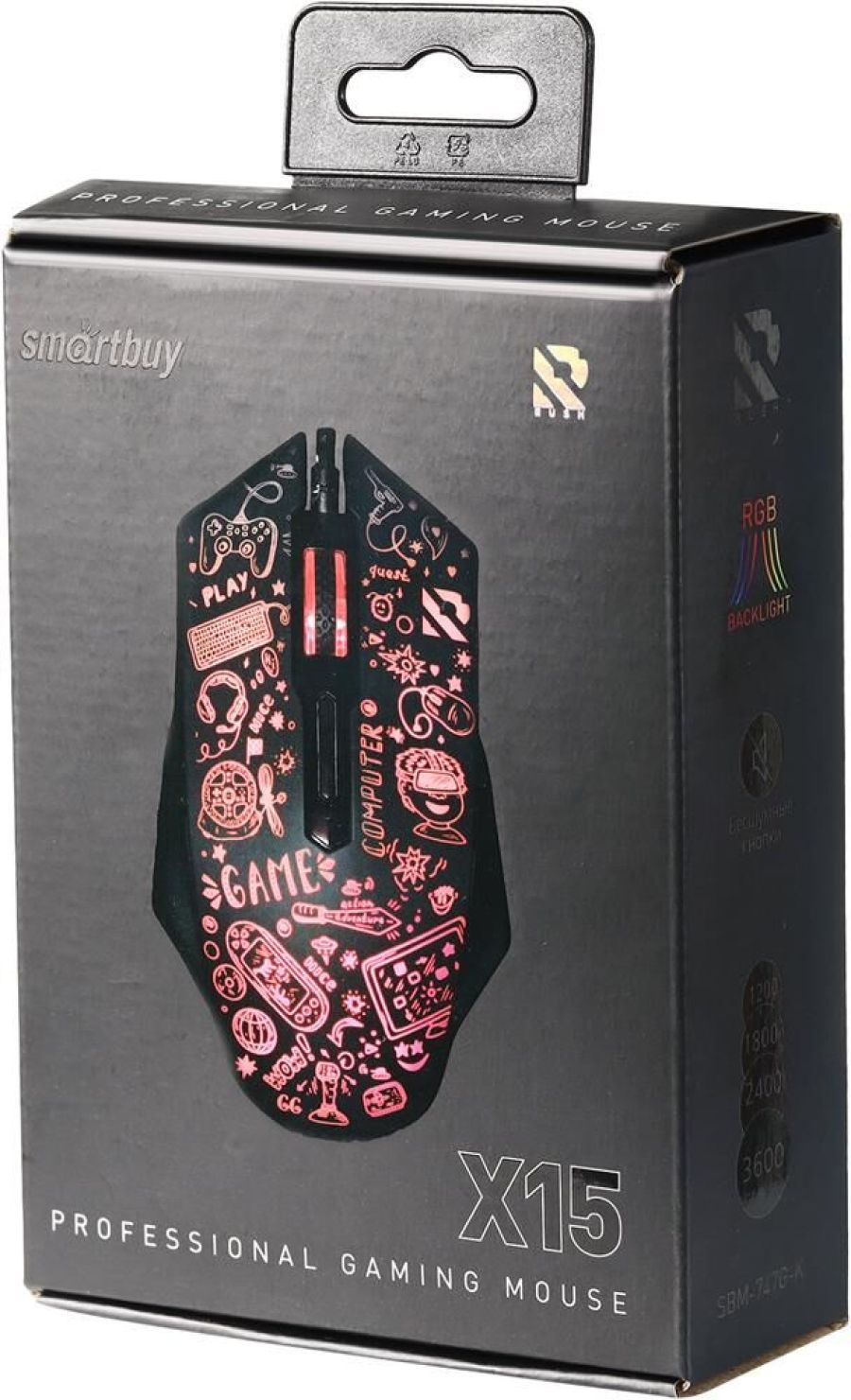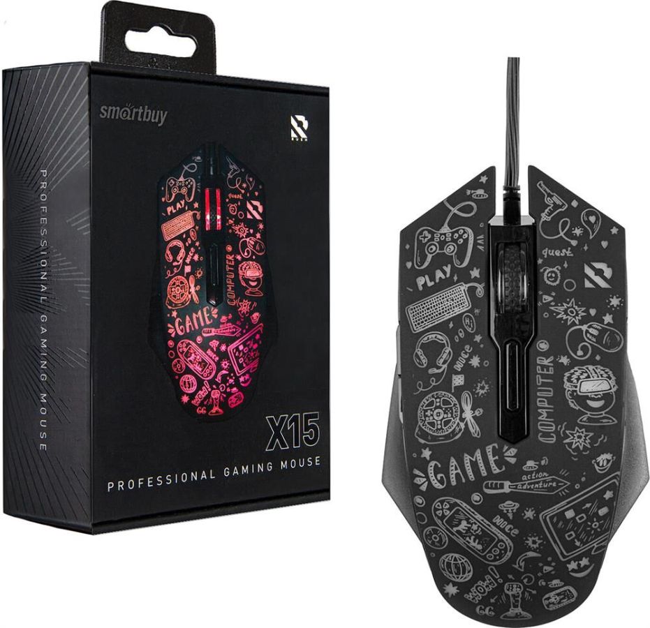 Smartbuy Rush X15 - геймерская бесшумная мышь со стильным дизайном и атмосферной RGB подсветкой. Отличный сенсор с изменяемым DPI, оптимальный размер и 2 боковые кнопки для удобства игрока. Лучший выбор для игровых марафонов!