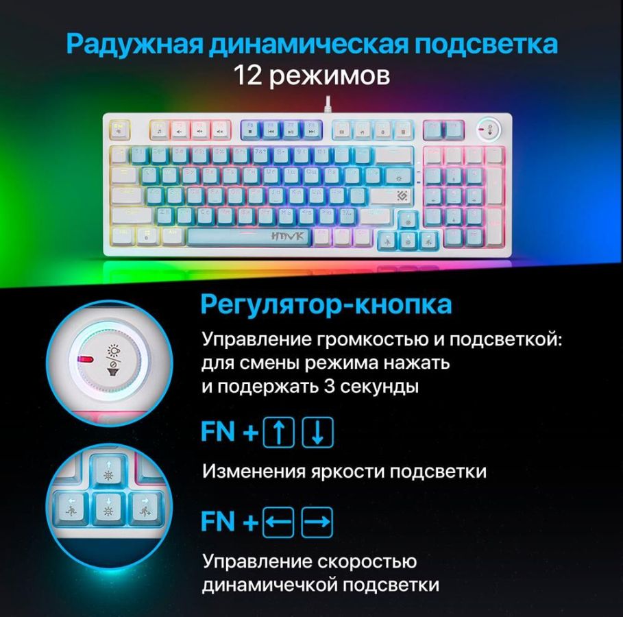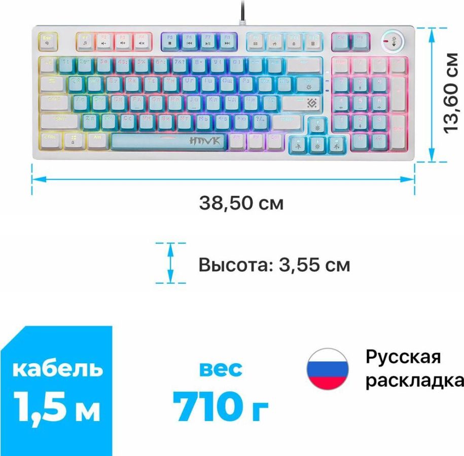 Тип товара: игровой Тип подключения: проводной Интерфейс подключения: USB Длина кабеля: 1.5 5% м Переключатели: OUTEMU+BROWN Количество нажатий: 10 миллионов Резиновые ножки: да Количество клавиш: 97 шт. Количество дополнительных клавиш (функций): регулятор громкости звука, 12 (+FN) Тип клавиатуры: Механическая Цвет: голубой ROHS / CE: Нет Масса индивидуальной упаковки: 0.83 кг Масса без упаковки: 0.71 кг Размеры без упаковки: 13.6 x 3.55 x 38.5 см Системные требования для ПК: Windows 2000/XP/Vista/7/8/10 и выше, Mac OS X10 Гарантийный срок: 6 месяцев