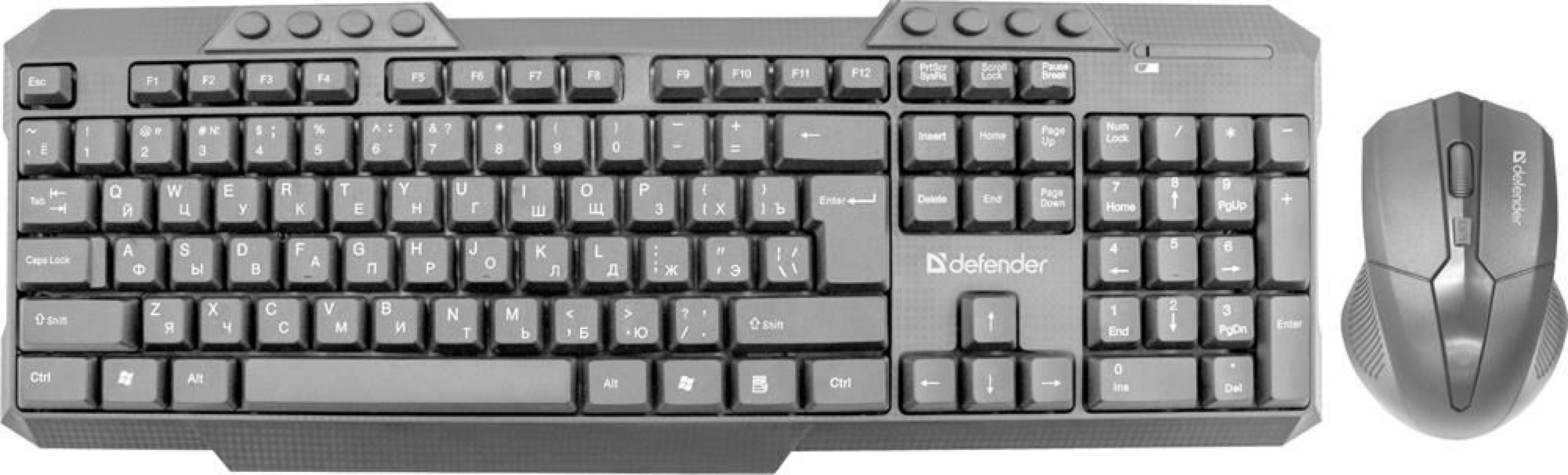 Комплект работает от одного приемника Удобная симметричная форма мыши - Удобна для работы любой рукой Классическая раскладка - Полноразмерная клавиша Enter Горячие клавиши для быстрого доступа к офисным, мультимедийным и интернет приложениям Удобное расположение мультимедийных клавиш Увеличенная площадь клавиш-модификаторов (Ctrl, Shift), клавиш Enter и BackSpace 3 режима разрешения мыши 800/1200/1600 dpi - Кнопка смены разрешения позволяет менять скорость курсора мыши одним нажатием (800/1200/1600 dpi) Угол наклона клавиатуры регулируется с помощью ножек Радиус действия - 10 м Легкая установка. Для работы не нужны драйверы.