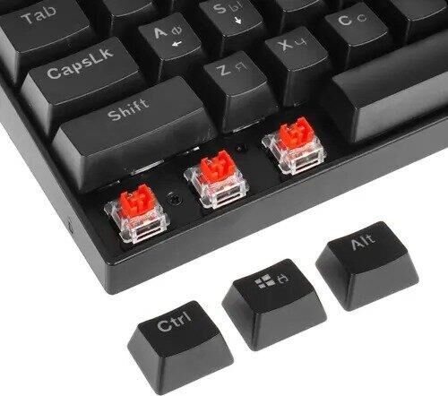 Аппаратная блокировка клавиши WIN во время игры Технология Hot Swap Технология Double injection Позолоченный USB-коннектор Влагоустойчивая конструкция клавиатуры