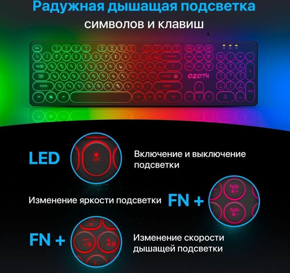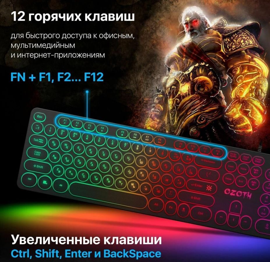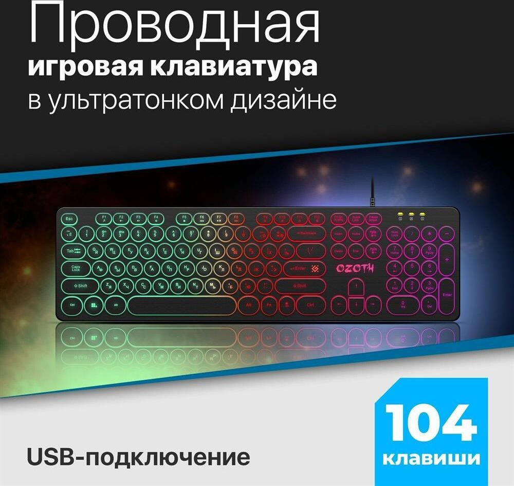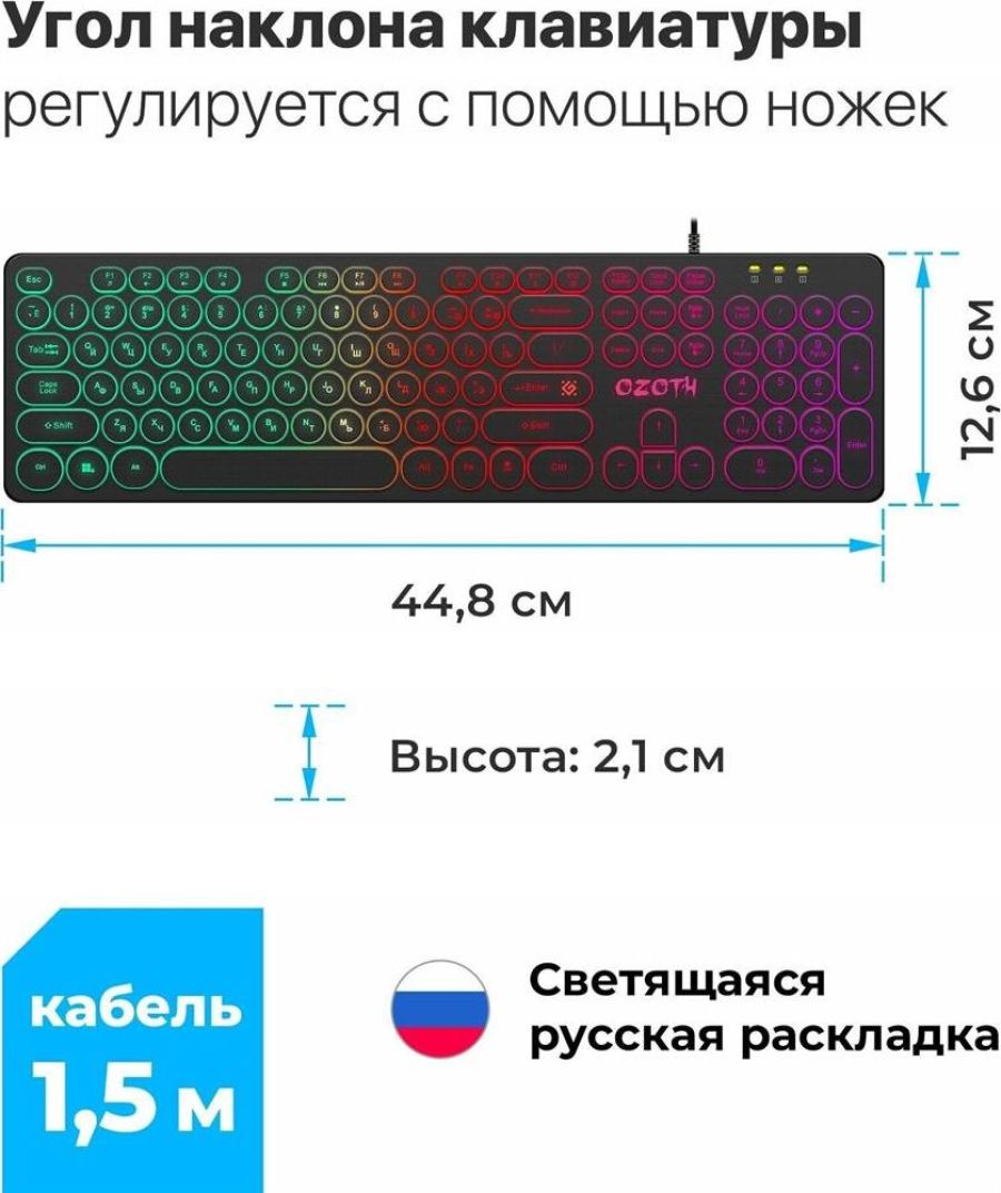 Комплектация: Клавиатура, фирменная упаковка, гарантийный талон , Подсветка: подсветка клавиш , Раскладка клавиатуры: русская