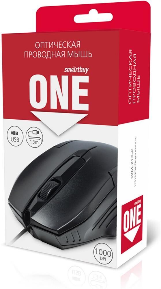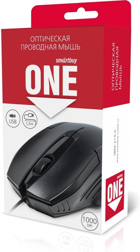 Комплектация: Мышь Smartbuy ONE 210-K, USB, черный, 3btn+Roll , Тип подключения: проводной , Игровая модель: нет