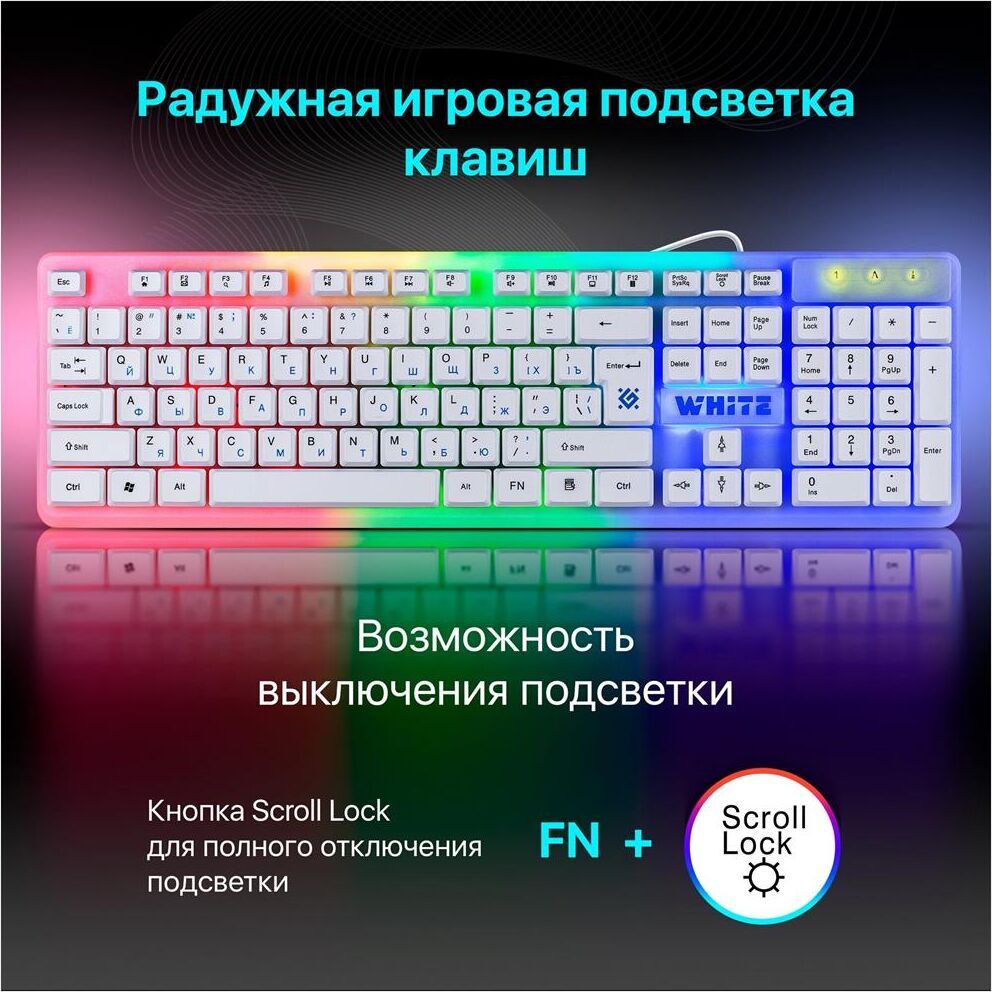 Комплектация: Клавиатура, упаковка , Подсветка: подсветка клавиш, возможность выключения подсветки , Раскладка клавиатуры: русская