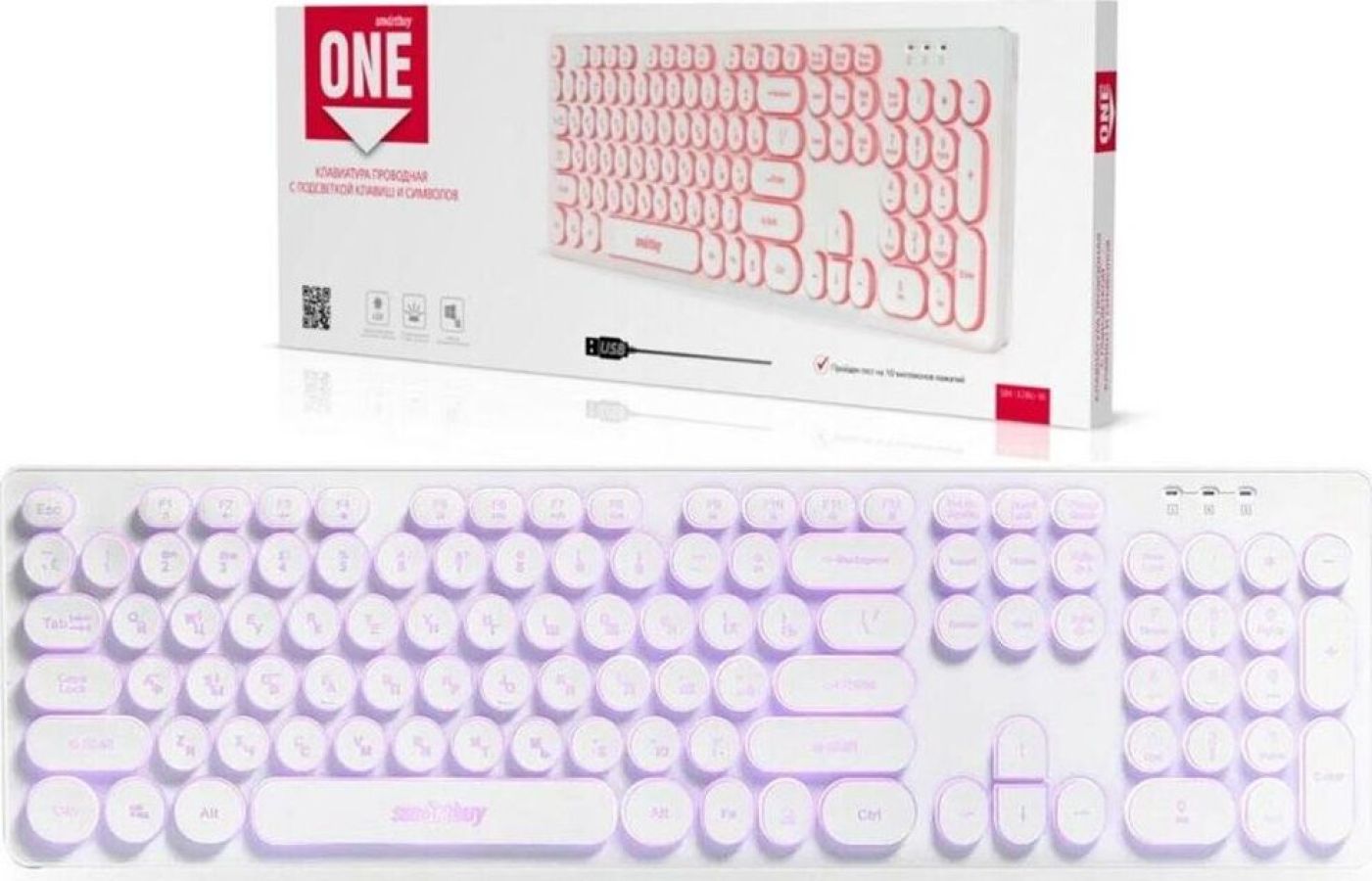 Клавиатура проводная, интерфейс USB, количество клавиш - 104, клавиши управления мультимедиа, подсветка клавиш и символов, длина кабеля: 1.6 м.