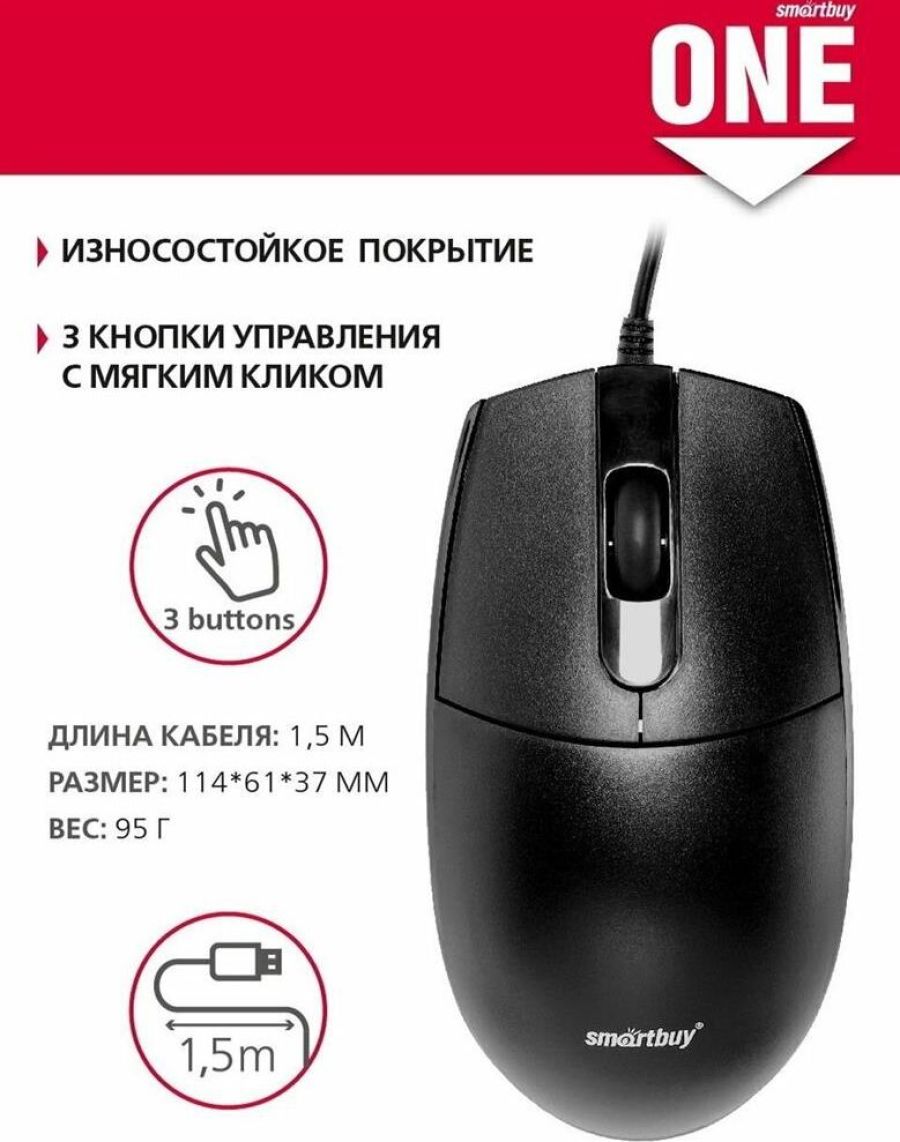 Цвет мыши: черныйТип сенсора: ОптическийКоличество кнопок мыши: 3Вес: 55 гРазрешение мыши (dpi): 1000Интерфейс подключения: USBРазмер мыши: 101*45*29 мм