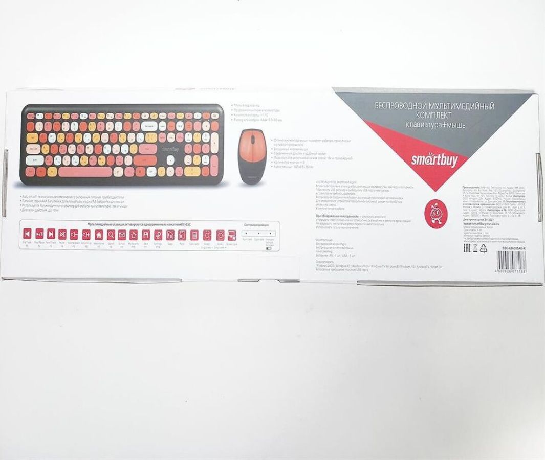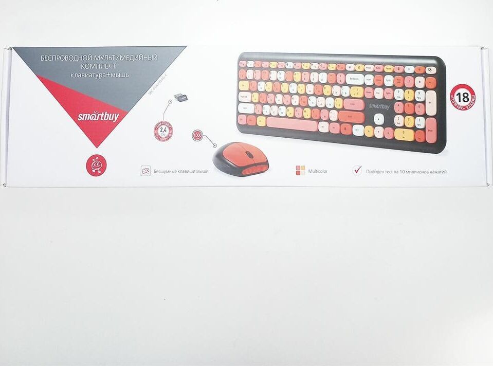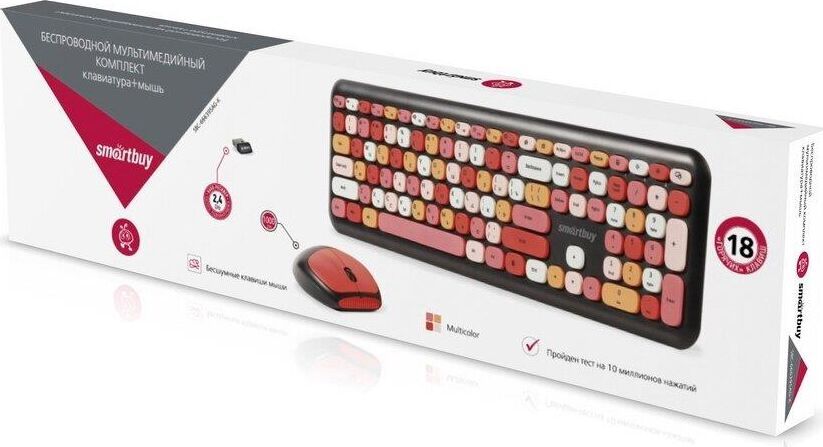 Цвет мыши: черныйТип сенсора: ОптическийКоличество кнопок мыши: 3Радиус действия: до 10 мПитание мыши: 1 батарейка ААРазрешение мыши (dpi): 1000Интерфейс подключения: USBЦвет клавиатуры: белыйПитание клавиатуры: 1 батарейка ААА