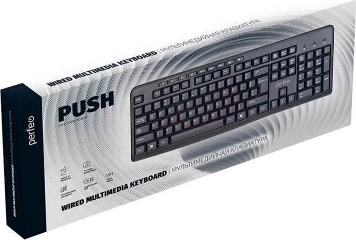 Клавиатура проводная, мультимедийная, интерфейс USB, количество кнопок - 113, количество мультимедийных клавиш - 9, количество функциональных клавиш - 9, защита от влаги, внутренняя LED-подсветка, длина кабеля - 1,8 м.