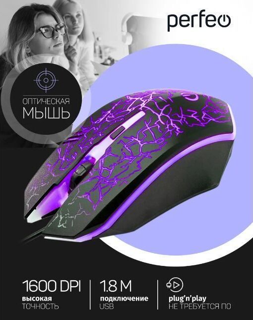 Мышь игровая, проводная, интерфейс USB, количество кнопок - 4, колесо проктурки, изменяемое разрешение - 1200/2400/3200/4800 dpi, внутренняя LED подсветка, длина кабеля - 1,8 м.
