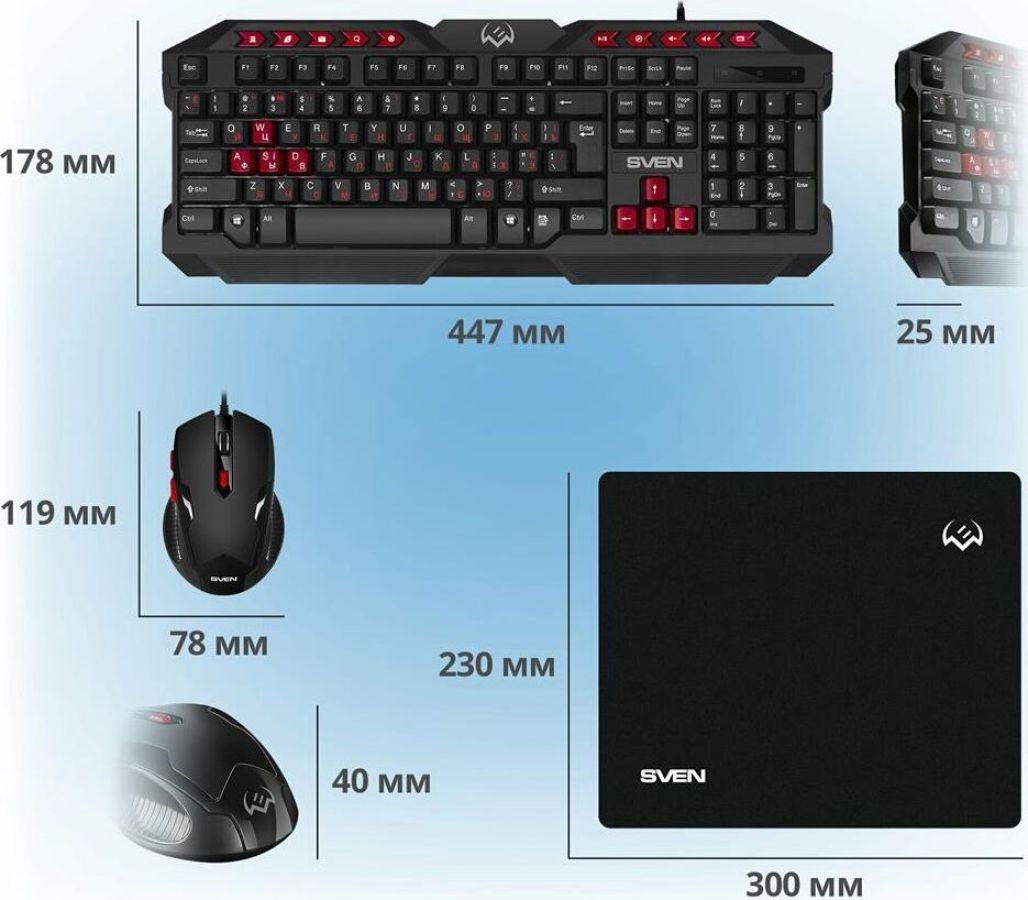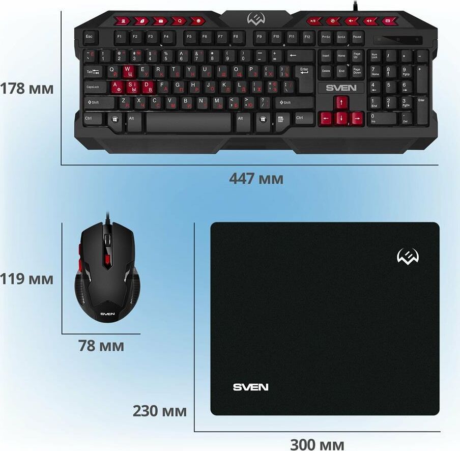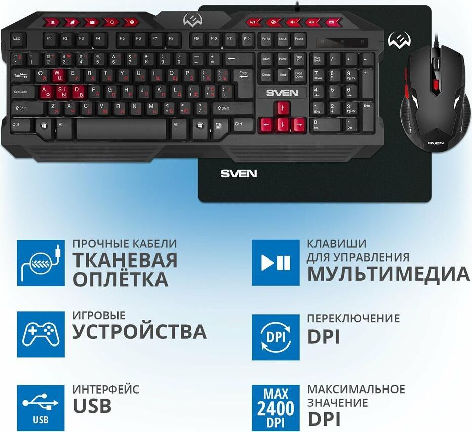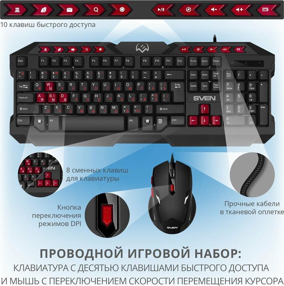 Гарантийный срок: 1 г. , Комплектация: игровая клавиатура и мышь , Колесо прокрутки: есть