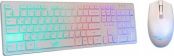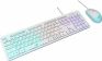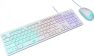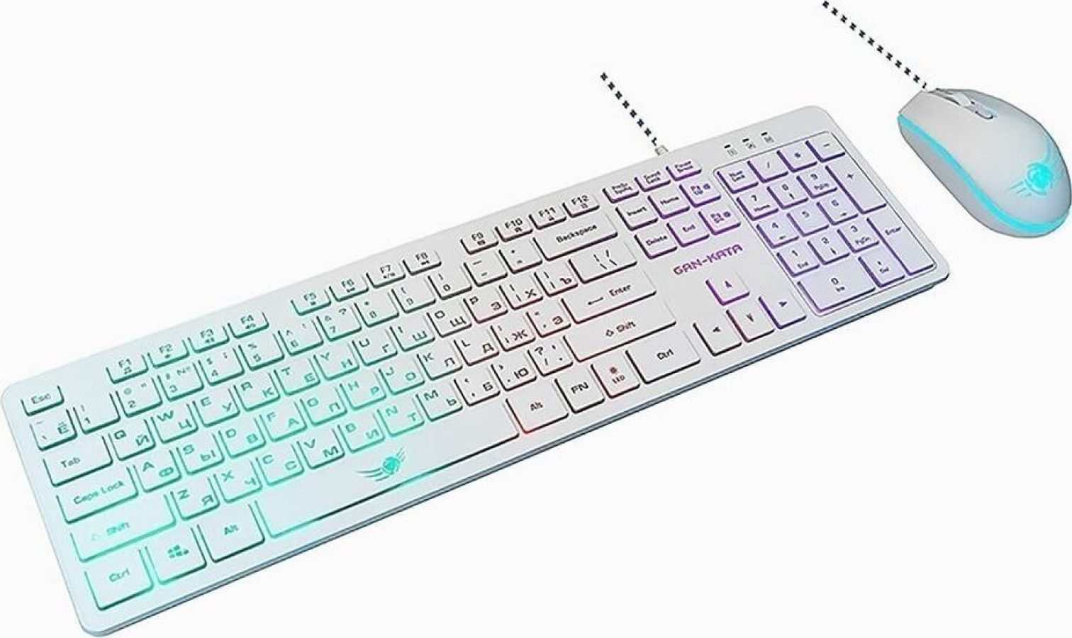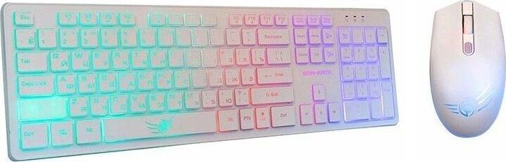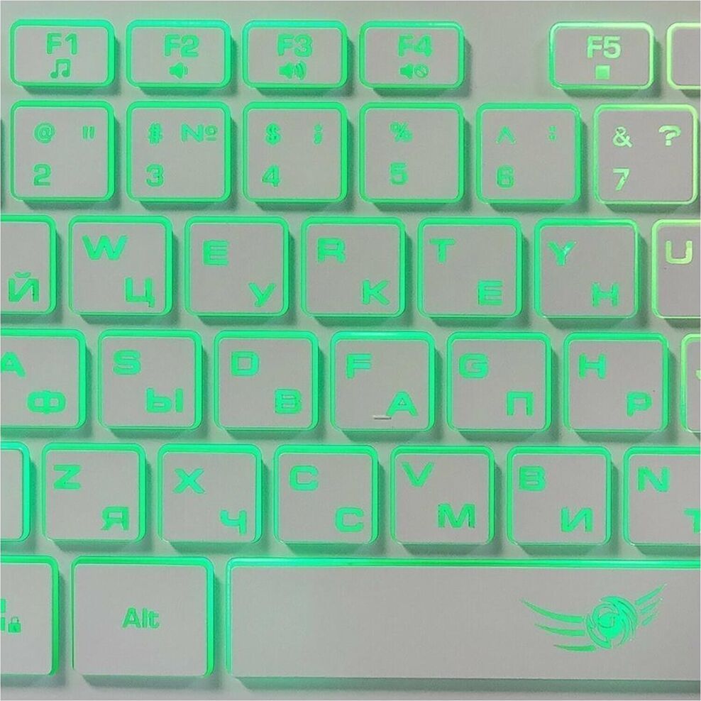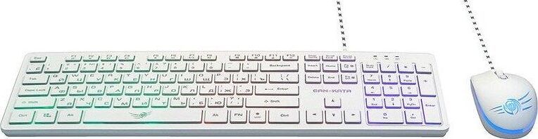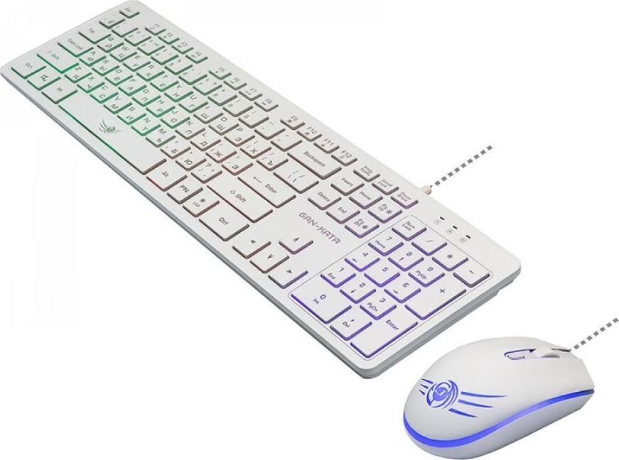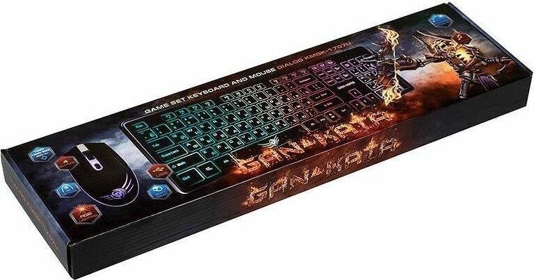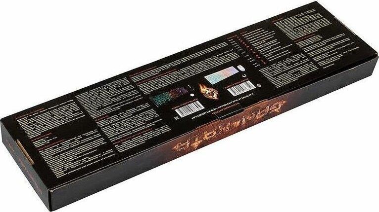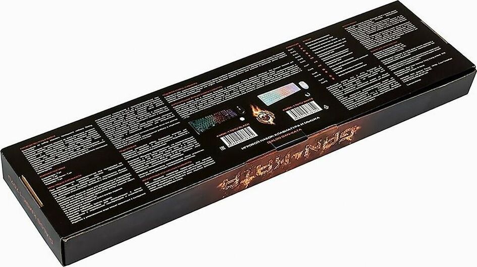 Игровой набор (клавиатура+мышь) мультимедийный, проводной, интерфейс USB, клавиатура - количество клавиш - 104, клавиши Windows, мультимедиа клавиши совмещённые с F-клавишами (активируются клавишей Fn), изменяемый угол наклона, длина кабеля - 1,5м; мышь: оптическая, количество кнопок - 4, колесо прокрутки, изменяемое разрешение - 1600/400/800/1200 dpi, максимальное разрешение мыши в CPI - 1600, длина кабеля - 1,5 м.