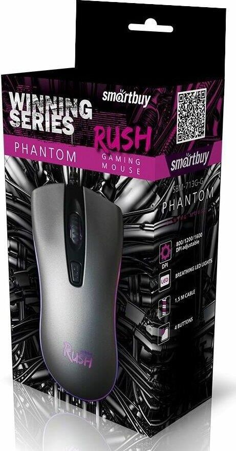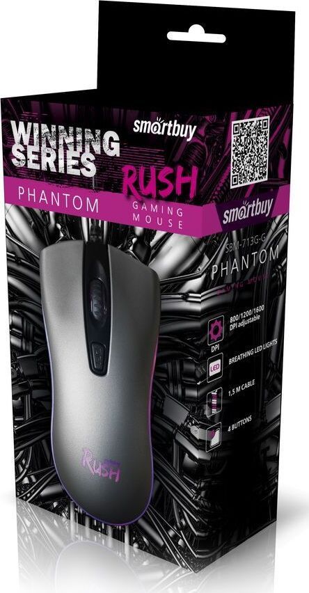 Мышь проводная, игровая, интерфейс USB количество клавиш - 4, колесо прокрутки, изменяемое разрешение - 800/1200/1600 dpi, мерцающая LED подсветка. длина кабеля - 1,5 м.