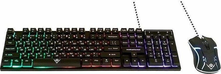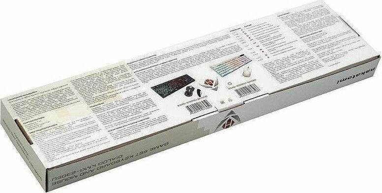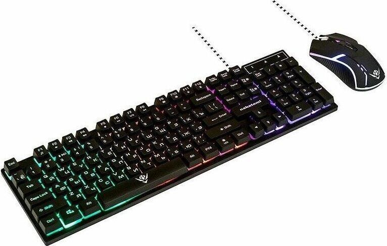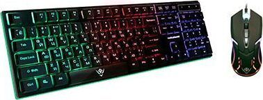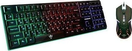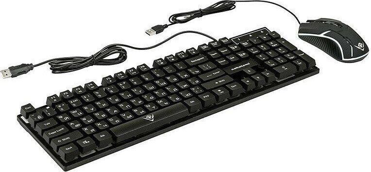 Игровой набор (клавиатура+мышь) , проводной, интерфейс USB; Количество клавиш: 104, Клавиши Windows, мультимедиа клавиши совмещённые с F-клавишами (активируются клавишей Fn); Мышь: оптическая, Количество кнопок - 4, колесо проктурки, Изменяемое разрешение: 1600/400/800/1200 dpi, Максимальное разрешение мыши в CPI1600, Длина кабеля: 1.5 м.