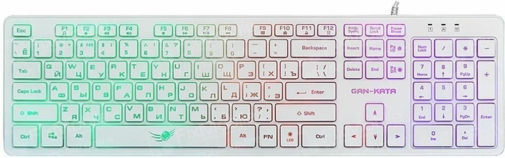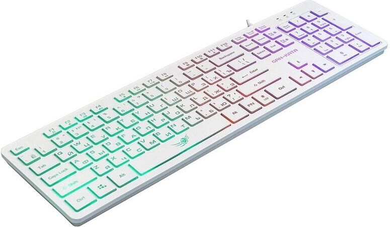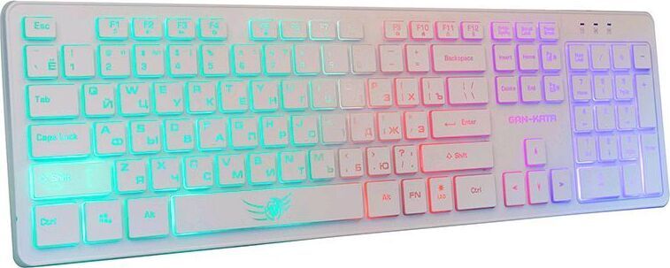 Мультимедийная игровая клавиатура. Регулируемый угол наклона. Сквозная радужная (многоцветная RGB) подсветка, регулируемая яркость. Функция возрастающе-затухающей пульсирующей подсветки.. Количество клавиш: 104. Интерфейс: USB. Длина кабеля: 1,6 м.