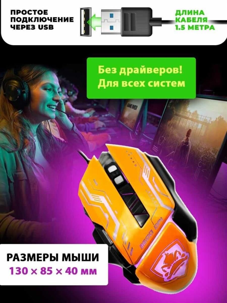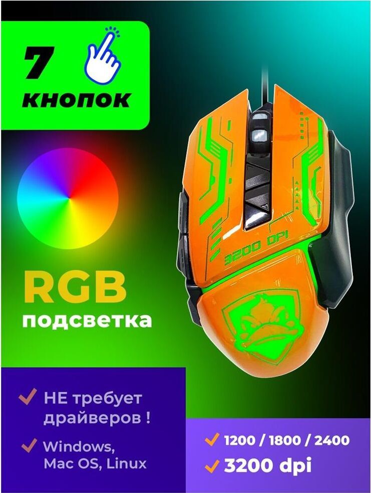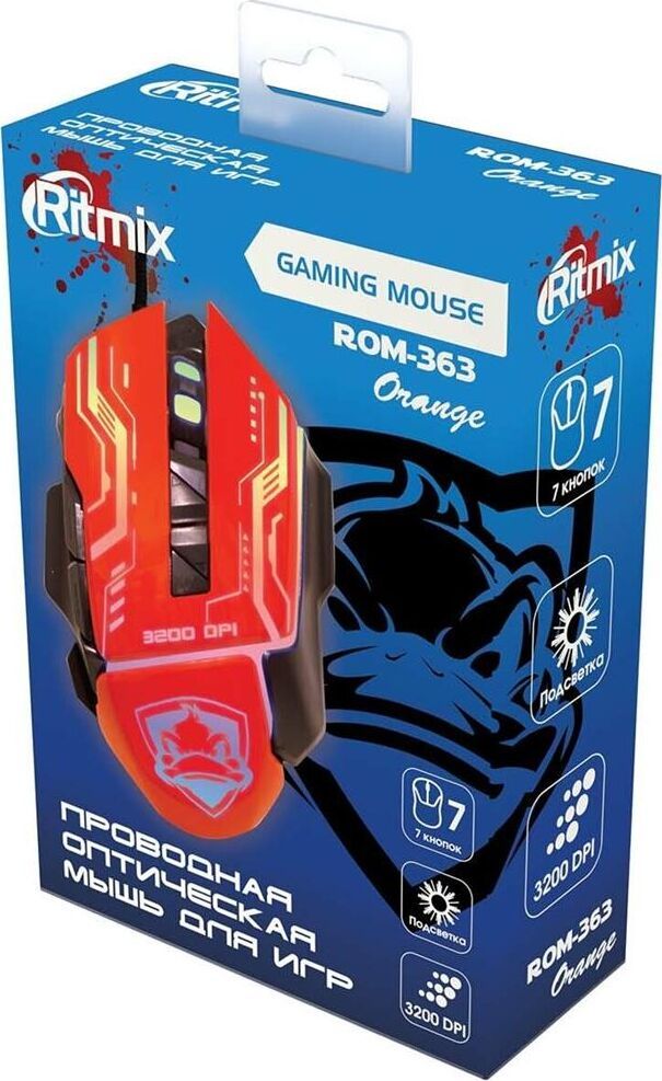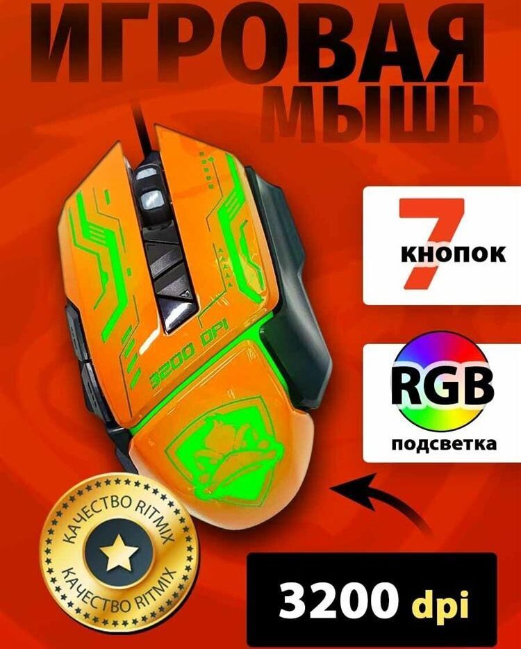 Мышь проводная, оптическая, интерфейс USB, количество кнопок - 7, колесо прокрутки, изменяемое разрешение 1200 / 1800 / 2400 / 3200 dpi, длина кабеля - 1,5 м.
