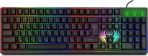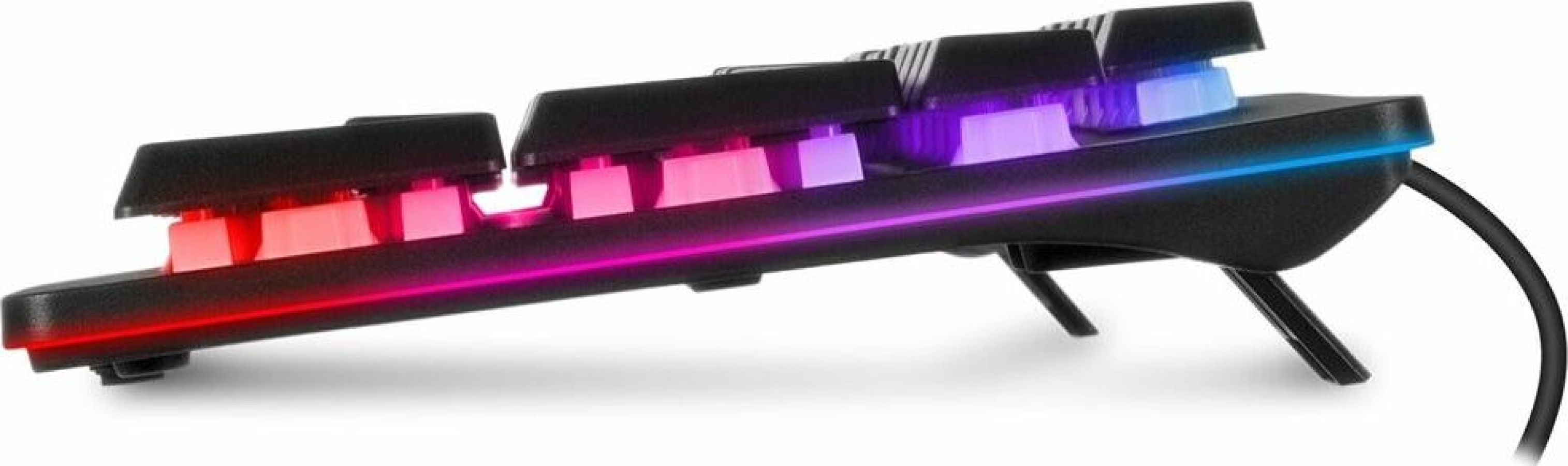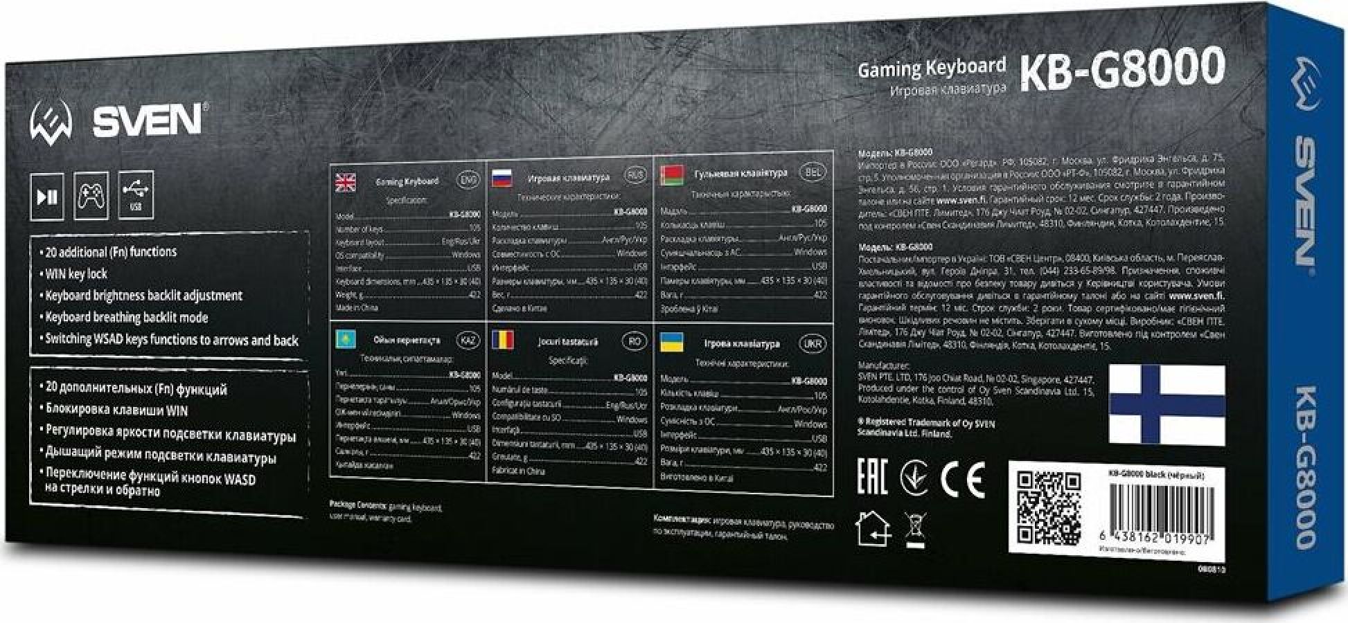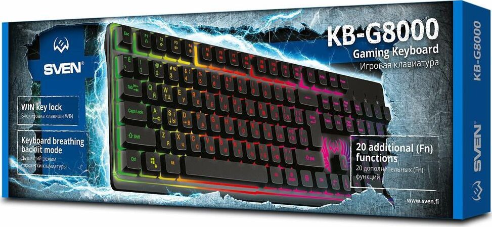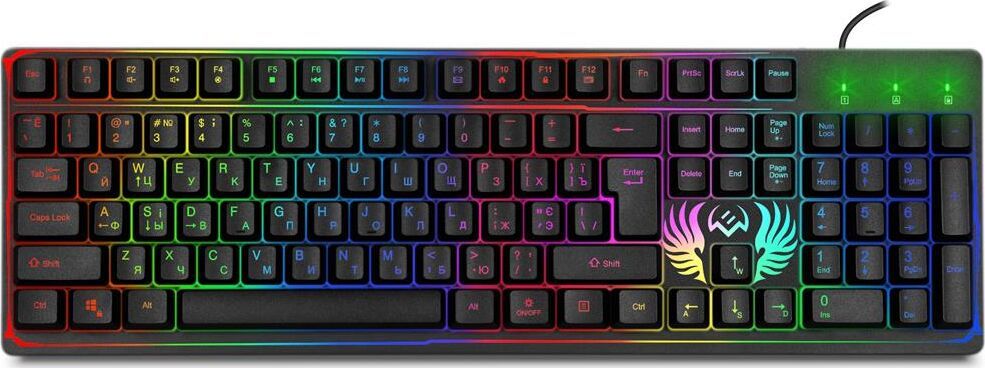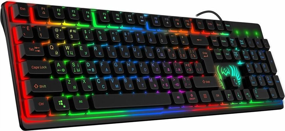 Клавиатура игровая, проводная. Оборудована разноцветной подсветкой с регулировкой яркости и «дышащим» режимом, позволяющей создать на игровом месте как агрессивную среду для онлайн-шутеров, так и атмосферу сосредоточения и концентрации для квестов и стратегий. 20 дополнительных (Fn) функций. Переключение режимов между клавишами WASD и стрелками. Количество клавиш - 105. Кол-во клавиш быстрого доступа - 20. Тип: мембранная. Интерфейс - USB. Длина кабеля - 1,8 м. Размеры изделия - 435*135*30 мм. Вес - 422 г.