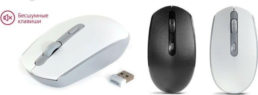 Комплектация: Мышь беспроводная SMARBUY ONE 280AG бело-серый , Тип подключения: беспроводной