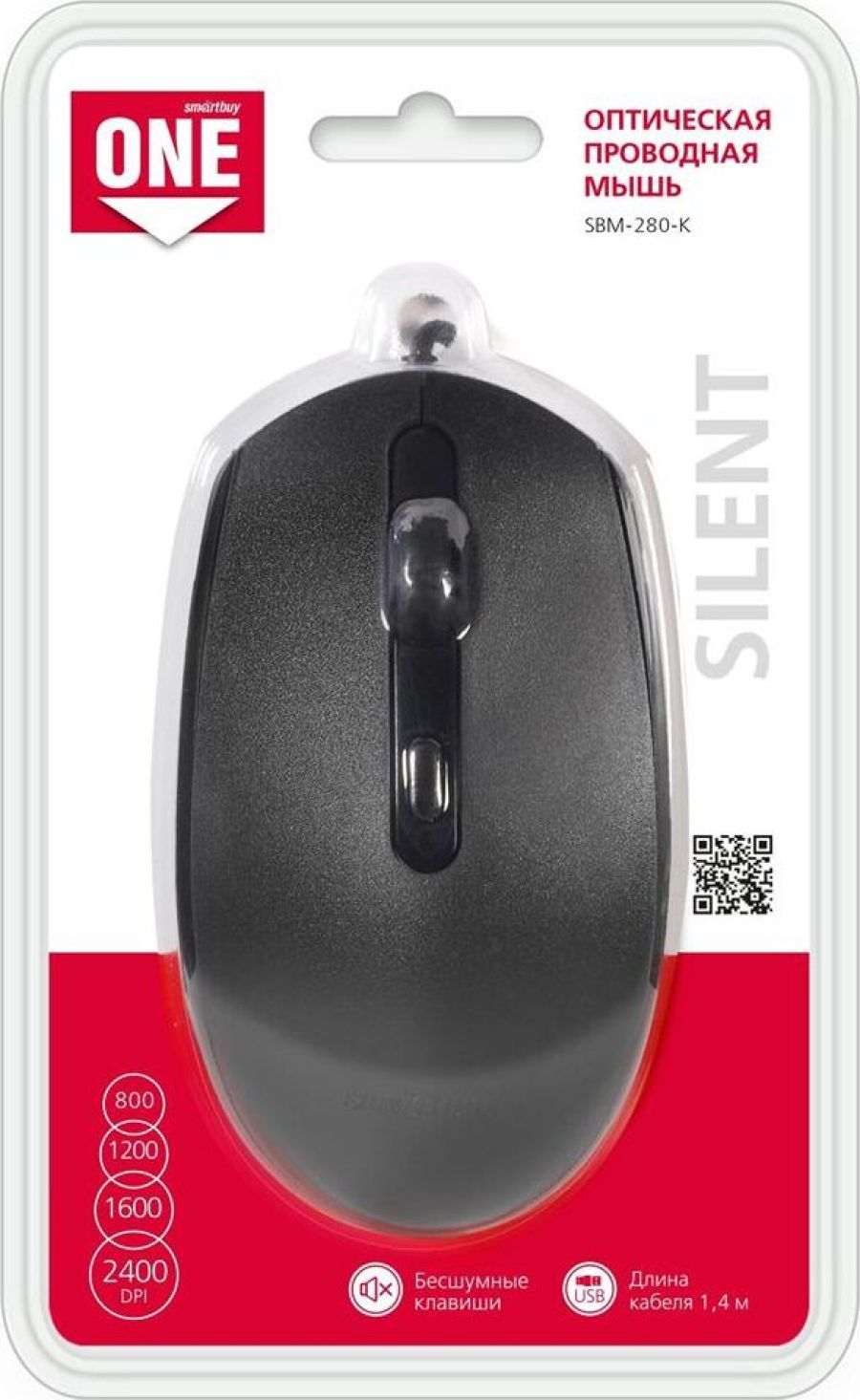 Мышь проводная, Бесшумные клавиши, 4 кнопки; износостойкое UV-покрытие с приятным на ощупь текстурным нанесением; бесшумные клавиши; эргономичный дизайн и удобный захват; отлично подходит для крупной руки; можно использовать как для левой, так и для правой рукой; 4 уровня DPI: 800/1200/1600/2400; длина кабеля 1,4 м